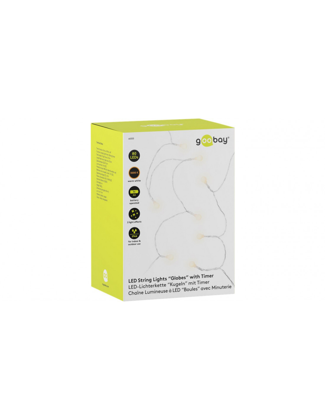 stopień ochrony IP44 do użytku na zewnątrz i wewnątrz pomieszczeń, np. jako łańcuch świetlny do ogrodu i na taras