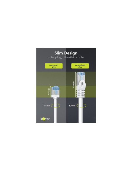 Ultra-elastyczny CAT 6A kabel krosowy, slim, U/FTP, biały bardzo krótkie wtyki, przewód z czystej miedzi (CU), LSZH, płaszcz TPE, AWG 32 CATegoria sama dla siebie: Super cienkie kable CAT z bardzo krótkimi złączami drastycznie zmniejszają objętość materiału w szafach serwerowych i panelach krosowych - dla znacznie lepszej cyrkulacji powietrza i mniejszego gromadzenia się ciepła niż w przypadku konwencjonalnego okablowania. Ponadto, miękki płaszcz TPE i cienkie miedziane przewodniki zapewniają wyjątkową elastyczność i wydajność materiałową, które sprawiają, że ta generacja kabli jest idealnym partnerem sieciowym. Supercienki kabel LAN z bardzo krótkimi złączami RJ45 zapewnia mniejszą objętość kabla w szafie serwerowej lub panelu krosowym, a tym samym optymalną cyrkulację powietrza Bezpieczny i elastyczny: Bez ekranowania skrętki i z bezhalogenową, niskodymną osłoną TPE zapewniającą szczególnie mały promień gięcia i wysoką elastyczność Dzięki AWG 32 i średnicy zewnętrznej 3,8 mm, kabel jest bardzo cienki, ale tak samo wydajny jak standardowy kabel CAT Kabel sieciowy CAT 6A jest idealny do szybkich połączeń, takich jak 10 Gigabit Ethernet 10GBASE-T, 100BASE-TX, 1000BASE-T i 10/100/1000/10000 Mbit/s Kabel RJ45 jest odpowiedni do zasilania przez sieć Ethernet (PoE, PoE+) i testowany pod kątem CAT 6A (dostarczany z indywidualnym protokołem pomiarowym) Wysokiej jakości przewodnik miedziany (CU) i pozłacane styki zapewniają niską rezystancję transmisji i zapobiegają korozji Skuteczne, kompaktowe zabezpieczenie przed załamaniem jest odporne na przerwanie kabla i zapewnia długą żywotność kabla Ethernet Produkty są oznakowane tylko papierową etykietą, nie stosuje się plastikowych torebek i plastikowych opasek kablowych. Zgodność z obowiązującymi normami IEC i ISO: IEC 60332-1: Trudnopalny, IEC 61034: Niski poziom dymu IEC 60754-2: Bezhalogenowy ISO 11801: Wydajność test kanału Fluke: kanał + PoE