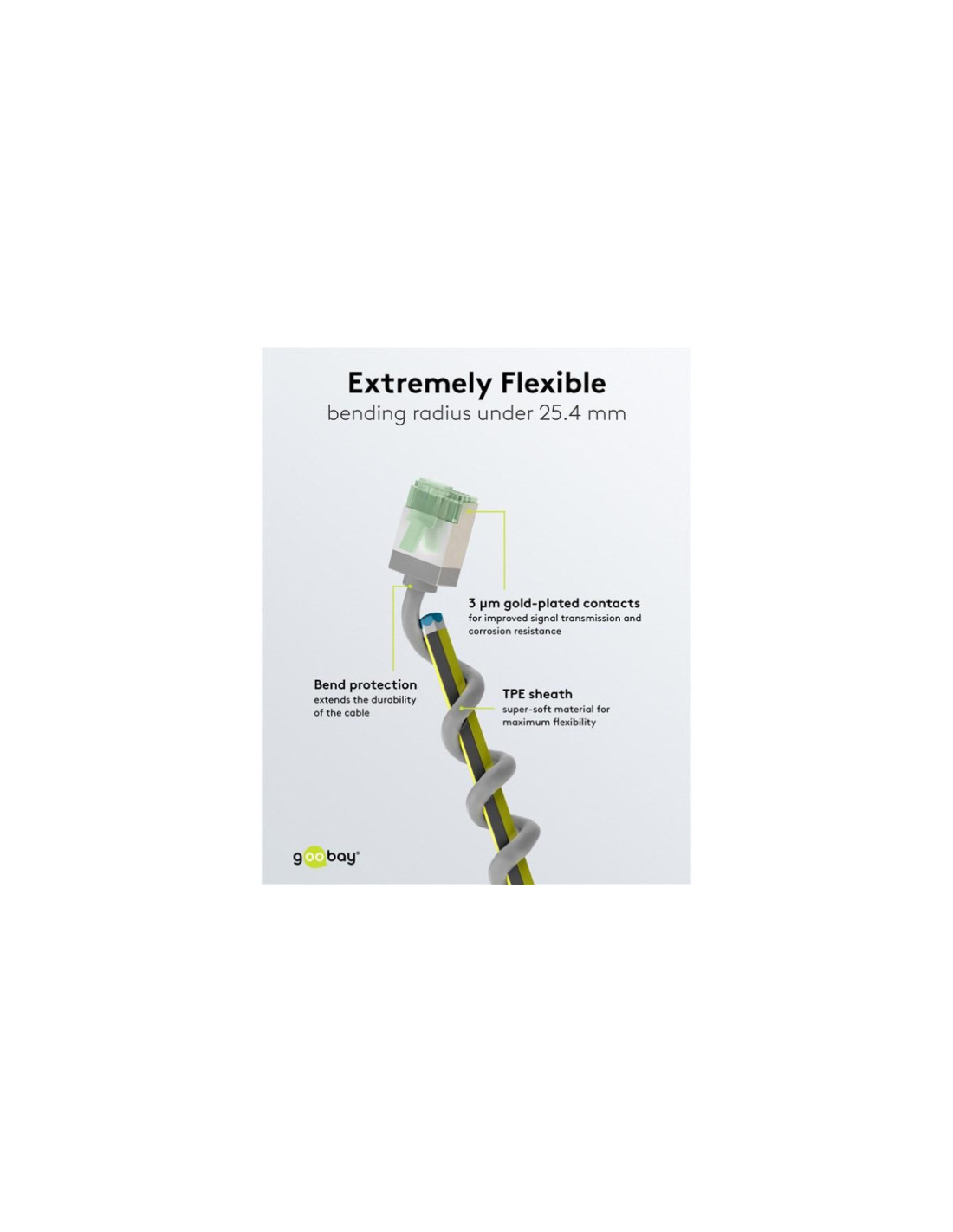 Ultra-elastyczny CAT 8.1 kabel krosowy, slim, U/FTP, szary bardzo krótkie wtyki, 99,9 % przewodnik z miedzi beztlenowej (OFC), LSZH, płaszcz TPE, AWG 32 CATegoria sama dla siebie: Super cienkie kable CAT z bardzo krótkimi złączami drastycznie zmniejszają objętość materiału w szafach serwerowych i panelach krosowych - dla znacznie lepszej cyrkulacji powietrza i mniejszego gromadzenia się ciepła niż w przypadku konwencjonalnego okablowania. Ponadto, miękki płaszcz TPE i cienkie miedziane przewodniki zapewniają wyjątkową elastyczność i wydajność materiałową, które sprawiają, że ta generacja kabli jest idealnym partnerem sieciowym. Supercienki kabel LAN z bardzo krótkimi złączami RJ45 zapewnia mniejszą objętość kabla w szafie serwerowej lub panelu krosowym, a tym samym optymalną cyrkulację powietrza Bezpieczny i elastyczny: Bez ekranowania skrętki i z bezhalogenową, niskodymną osłoną TPE zapewniającą szczególnie mały promień gięcia i wysoką elastyczność Dzięki AWG 32 i średnicy zewnętrznej 3,8 mm, kabel jest bardzo cienki, ale tak samo wydajny jak standardowy kabel CAT Szybki kabel sieciowy jest idealny do sieci Ethernet z 25/40GBASE-T (z obsługą 40 Gigabitów), wstecznie kompatybilny z 10BASE-T, 100BASE-TX, 1000BASE-T, 10GBASE-T i 10/100/1000/10000 Mbit/s Dzięki szerokości pasma transmisji do 2 GHz (2000 MHz) kabel Ethernet ma 4-krotnie większą szerokość pasma niż kable CAT 6A Kabel RJ45 jest odpowiedni do zasilania przez sieć Ethernet (PoE, PoE+, UPoE, 4PPoE) i HDBaseT Skuteczne, kompaktowe zabezpieczenie przed załamaniem jest odporne na przerwanie kabla i zapewnia długą żywotność kabla Ethernet Produkty są oznakowane tylko papierową etykietą, nie stosuje się plastikowych torebek i plastikowych opasek kablowych. Zgodność z obowiązującymi normami IEC i ISO: IEC 60332-1: Trudnopalny, IEC 61034: Niski poziom dymu IEC 60754-2: Bezhalogenowy ISO 11801: Wydajność test kanału Fluke: kanał + PoE
