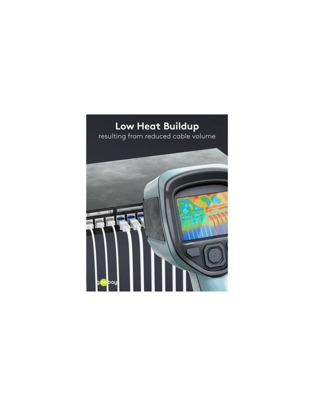 Ultra-elastyczny CAT 6A kabel krosowy, slim, U/FTP, biały bardzo krótkie wtyki, przewód z czystej miedzi (CU), LSZH, płaszcz TPE, AWG 32 CATegoria sama dla siebie: Super cienkie kable CAT z bardzo krótkimi złączami drastycznie zmniejszają objętość materiału w szafach serwerowych i panelach krosowych - dla znacznie lepszej cyrkulacji powietrza i mniejszego gromadzenia się ciepła niż w przypadku konwencjonalnego okablowania. Ponadto, miękki płaszcz TPE i cienkie miedziane przewodniki zapewniają wyjątkową elastyczność i wydajność materiałową, które sprawiają, że ta generacja kabli jest idealnym partnerem sieciowym. Supercienki kabel LAN z bardzo krótkimi złączami RJ45 zapewnia mniejszą objętość kabla w szafie serwerowej lub panelu krosowym, a tym samym optymalną cyrkulację powietrza Bezpieczny i elastyczny: Bez ekranowania skrętki i z bezhalogenową, niskodymną osłoną TPE zapewniającą szczególnie mały promień gięcia i wysoką elastyczność Dzięki AWG 32 i średnicy zewnętrznej 3,8 mm, kabel jest bardzo cienki, ale tak samo wydajny jak standardowy kabel CAT Kabel sieciowy CAT 6A jest idealny do szybkich połączeń, takich jak 10 Gigabit Ethernet 10GBASE-T, 100BASE-TX, 1000BASE-T i 10/100/1000/10000 Mbit/s Kabel RJ45 jest odpowiedni do zasilania przez sieć Ethernet (PoE, PoE+) i testowany pod kątem CAT 6A (dostarczany z indywidualnym protokołem pomiarowym) Wysokiej jakości przewodnik miedziany (CU) i pozłacane styki zapewniają niską rezystancję transmisji i zapobiegają korozji Skuteczne, kompaktowe zabezpieczenie przed załamaniem jest odporne na przerwanie kabla i zapewnia długą żywotność kabla Ethernet Produkty są oznakowane tylko papierową etykietą, nie stosuje się plastikowych torebek i plastikowych opasek kablowych. Zgodność z obowiązującymi normami IEC i ISO: IEC 60332-1: Trudnopalny, IEC 61034: Niski poziom dymu IEC 60754-2: Bezhalogenowy ISO 11801: Wydajność test kanału Fluke: kanał + PoE