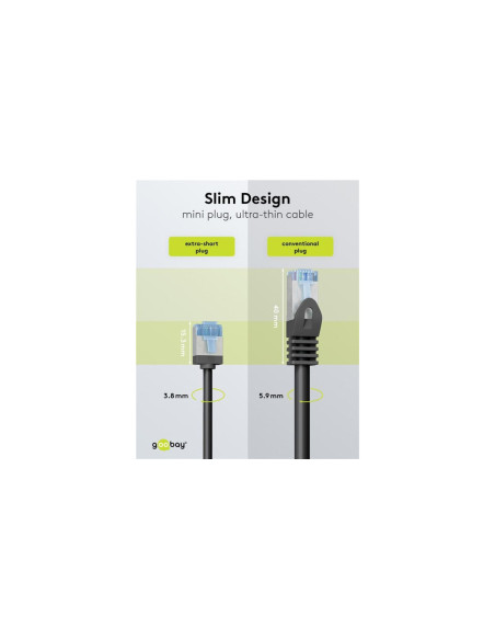 Ultra-elastyczny CAT 6A kabel krosowy, slim, U/FTP, czarny bardzo krótkie wtyki, przewód z czystej miedzi (CU), LSZH, płaszcz TPE, AWG 32 CATegoria sama dla siebie: Super cienkie kable CAT z bardzo krótkimi złączami drastycznie zmniejszają objętość materiału w szafach serwerowych i panelach krosowych - dla znacznie lepszej cyrkulacji powietrza i mniejszego gromadzenia się ciepła niż w przypadku konwencjonalnego okablowania. Ponadto, miękki płaszcz TPE i cienkie miedziane przewodniki zapewniają wyjątkową elastyczność i wydajność materiałową, które sprawiają, że ta generacja kabli jest idealnym partnerem sieciowym. Supercienki kabel LAN z bardzo krótkimi złączami RJ45 zapewnia mniejszą objętość kabla w szafie serwerowej lub panelu krosowym, a tym samym optymalną cyrkulację powietrza Bezpieczny i elastyczny: Bez ekranowania skrętki i z bezhalogenową, niskodymną osłoną TPE zapewniającą szczególnie mały promień gięcia i wysoką elastyczność Dzięki AWG 32 i średnicy zewnętrznej 3,8 mm, kabel jest bardzo cienki, ale tak samo wydajny jak standardowy kabel CAT Kabel sieciowy CAT 6A jest idealny do szybkich połączeń, takich jak 10 Gigabit Ethernet 10GBASE-T, 100BASE-TX, 1000BASE-T i 10/100/1000/10000 Mbit/s Kabel RJ45 jest odpowiedni do zasilania przez sieć Ethernet (PoE, PoE+) i testowany pod kątem CAT 6A (dostarczany z indywidualnym protokołem pomiarowym) Wysokiej jakości przewodnik miedziany (CU) i pozłacane styki zapewniają niską rezystancję transmisji i zapobiegają korozji Skuteczne, kompaktowe zabezpieczenie przed załamaniem jest odporne na przerwanie kabla i zapewnia długą żywotność kabla Ethernet Produkty są oznakowane tylko papierową etykietą, nie stosuje się plastikowych torebek i plastikowych opasek kablowych. Zgodność z obowiązującymi normami IEC i ISO: IEC 60332-1: Trudnopalny, IEC 61034: Niski poziom dymu IEC 60754-2: Bezhalogenowy ISO 11801: Wydajność test kanału Fluke: kanał + PoE