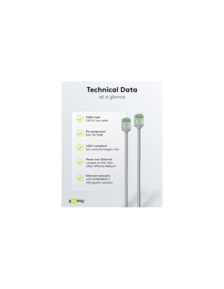 Ultra-elastyczny CAT 8.1 kabel krosowy, slim, U/FTP, szary bardzo krótkie wtyki, 99,9 % przewodnik z miedzi beztlenowej (OFC), LSZH, płaszcz TPE, AWG 32 CATegoria sama dla siebie: Super cienkie kable CAT z bardzo krótkimi złączami drastycznie zmniejszają objętość materiału w szafach serwerowych i panelach krosowych - dla znacznie lepszej cyrkulacji powietrza i mniejszego gromadzenia się ciepła niż w przypadku konwencjonalnego okablowania. Ponadto, miękki płaszcz TPE i cienkie miedziane przewodniki zapewniają wyjątkową elastyczność i wydajność materiałową, które sprawiają, że ta generacja kabli jest idealnym partnerem sieciowym. Supercienki kabel LAN z bardzo krótkimi złączami RJ45 zapewnia mniejszą objętość kabla w szafie serwerowej lub panelu krosowym, a tym samym optymalną cyrkulację powietrza Bezpieczny i elastyczny: Bez ekranowania skrętki i z bezhalogenową, niskodymną osłoną TPE zapewniającą szczególnie mały promień gięcia i wysoką elastyczność Dzięki AWG 32 i średnicy zewnętrznej 3,8 mm, kabel jest bardzo cienki, ale tak samo wydajny jak standardowy kabel CAT Szybki kabel sieciowy jest idealny do sieci Ethernet z 25/40GBASE-T (z obsługą 40 Gigabitów), wstecznie kompatybilny z 10BASE-T, 100BASE-TX, 1000BASE-T, 10GBASE-T i 10/100/1000/10000 Mbit/s Dzięki szerokości pasma transmisji do 2 GHz (2000 MHz) kabel Ethernet ma 4-krotnie większą szerokość pasma niż kable CAT 6A Kabel RJ45 jest odpowiedni do zasilania przez sieć Ethernet (PoE, PoE+, UPoE, 4PPoE) i HDBaseT Skuteczne, kompaktowe zabezpieczenie przed załamaniem jest odporne na przerwanie kabla i zapewnia długą żywotność kabla Ethernet Produkty są oznakowane tylko papierową etykietą, nie stosuje się plastikowych torebek i plastikowych opasek kablowych. Zgodność z obowiązującymi normami IEC i ISO: IEC 60332-1: Trudnopalny, IEC 61034: Niski poziom dymu IEC 60754-2: Bezhalogenowy ISO 11801: Wydajność test kanału Fluke: kanał + PoE