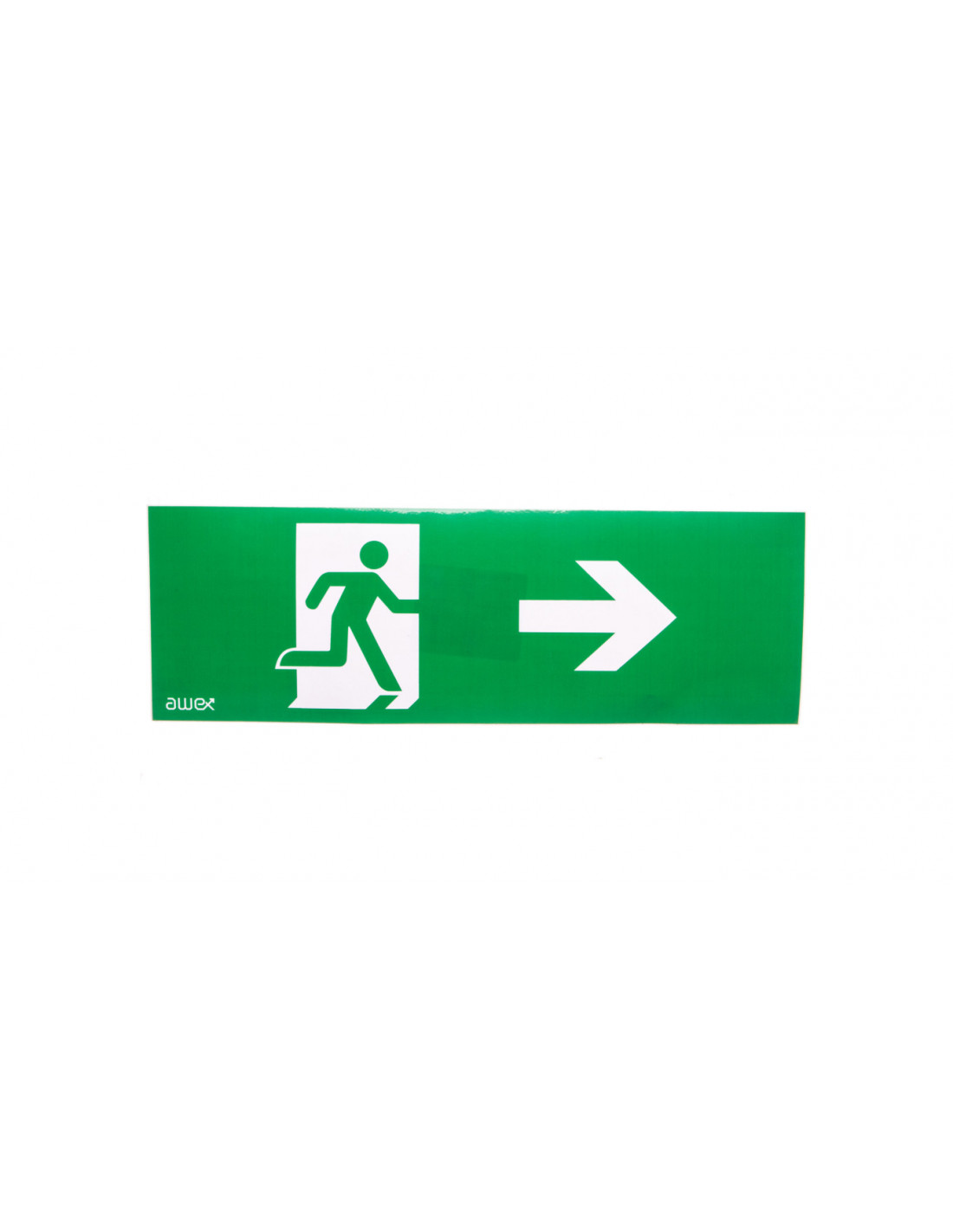Piktogram PM25 100x300 człowiek w drzwiach strzałka prawo logo awex (ISO7010)