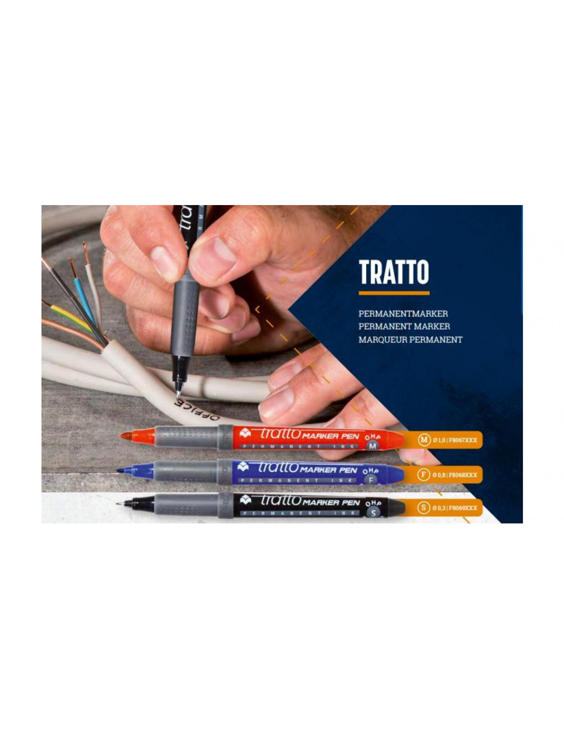 Marker permanentny, szybko schnący: Marker Tratto należy do kategorii markerów permanentnych, które pozostawiają trwałe ślady na powierzchniach. Dodatkowo, atrament markera szybko wysycha, co zapobiega rozmazywaniu i przypadkowemu zamazywaniu oznaczeń.
