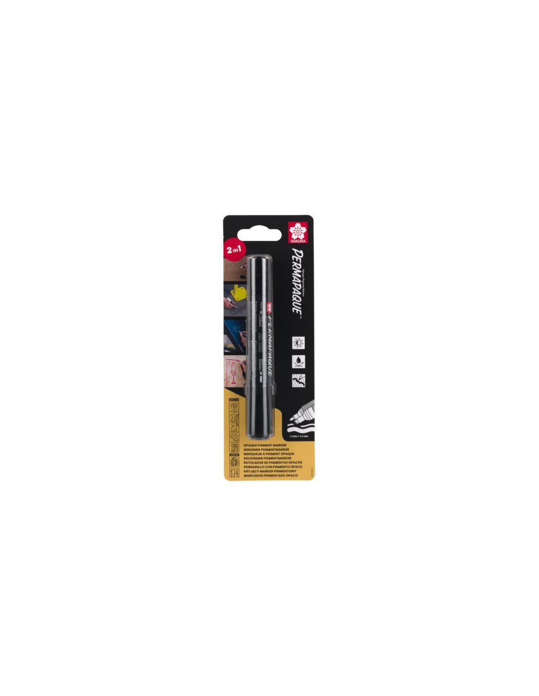Sakura Permapaque to wyjątkowy, uniwersalny marker permanentny z atramentem pigmentowym na bazie wody. Marker ma dwie końcówki: cienką 1 mm i szeroką 5,5 mm, i nie wymaga wstrząsania ani pompowania przed użyciem. Dzięki specjalnemu atramentowi Permapaque gwarantuje trwałe, kryjące wykończenie.