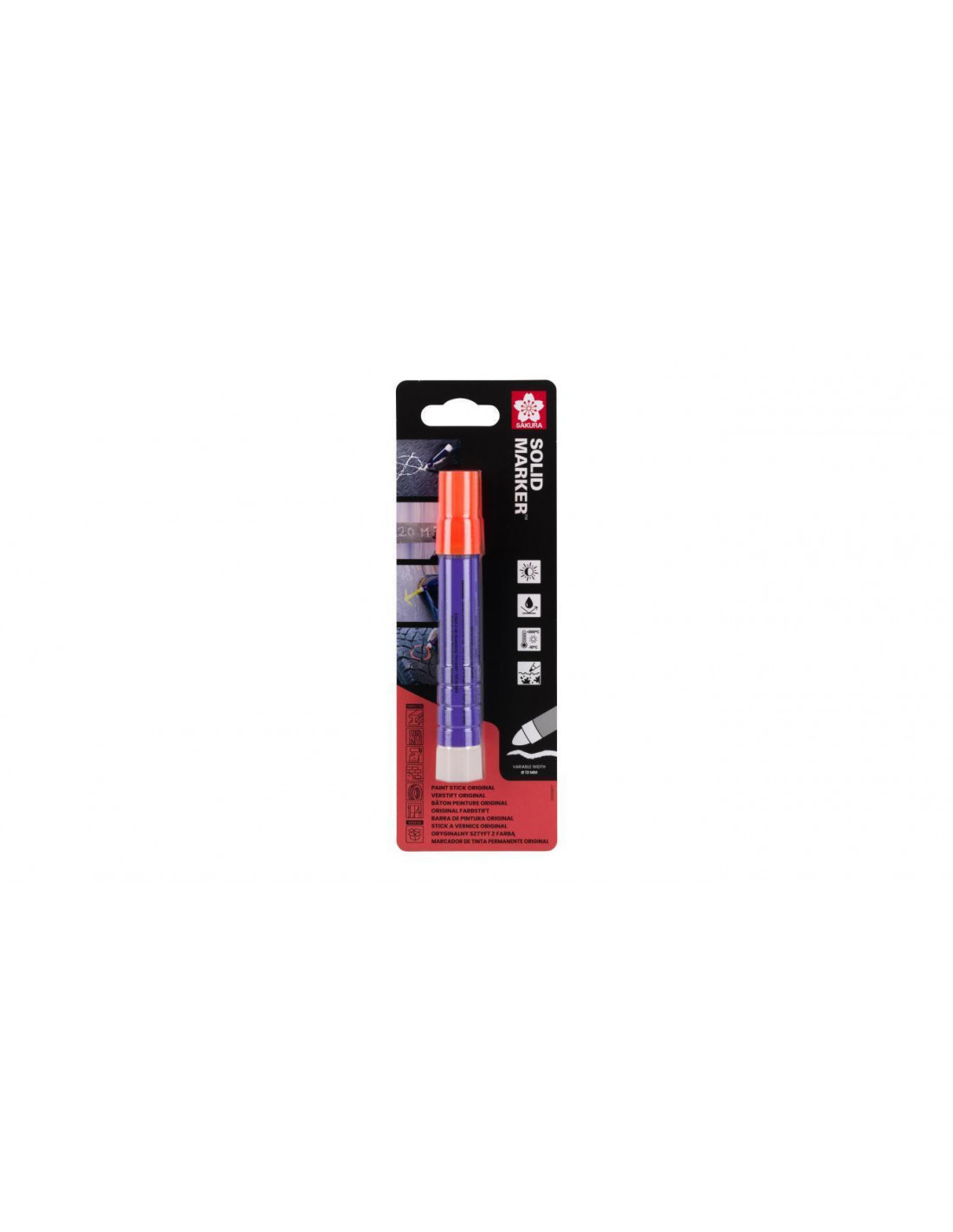 Niezwykle wytrzymały marker do wymagających zadań! Solid Marker to pierwsza na świecie farba w formie stałej w markerze. Zawsze działa, gdziekolwiek i kiedykolwiek! Innowacyjny mechanizm skrętu “stay fresh” utrzymuje farbę świeżą i gotową do użycia. Jeśli marker wyschnie, wystarczy go trochę przyciąć nożem. Końcówkę można też przyciąć, jeśli potrzebne jest mniejsze znakowanie.