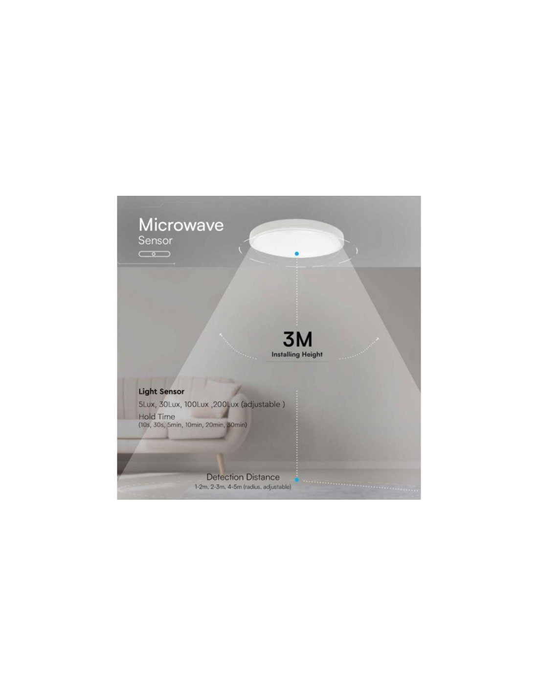 Plafoniera LED 24W 2500lm 3000K IP44 Okrągła fi350 Mleczny Biała Ramka z mikrofalowym czujnikiem ruchu (+ pilot do sterowania) 7