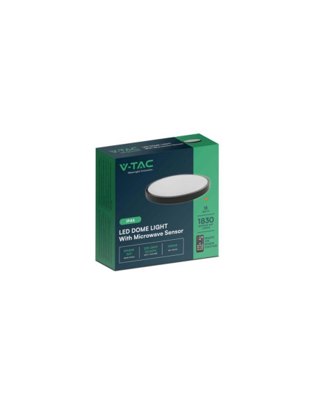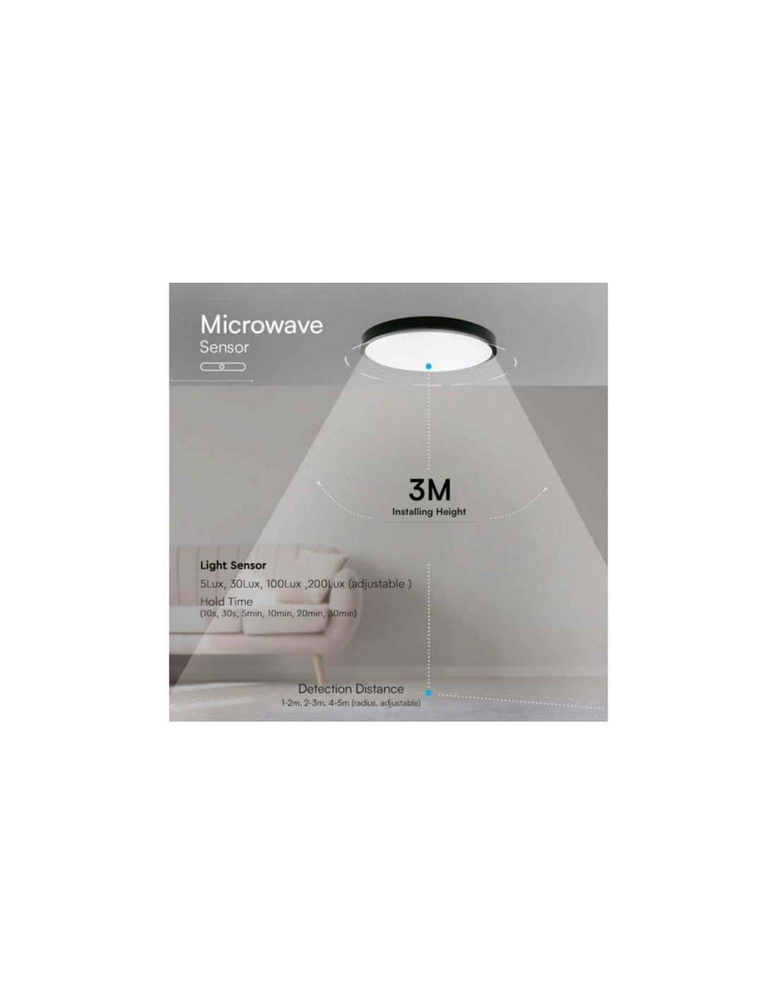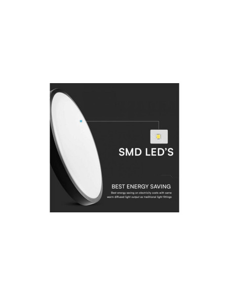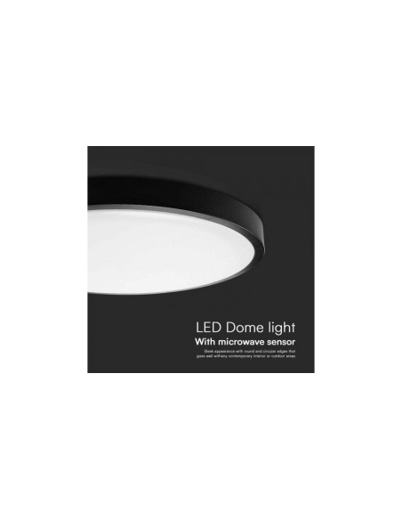 Plafoniera LED 18W 1830lm 4000K IP44 Okrągła fi295 Mleczny Czarna Ramka z mikrofalowym czujnikiem ruchu (+ pilot do ster