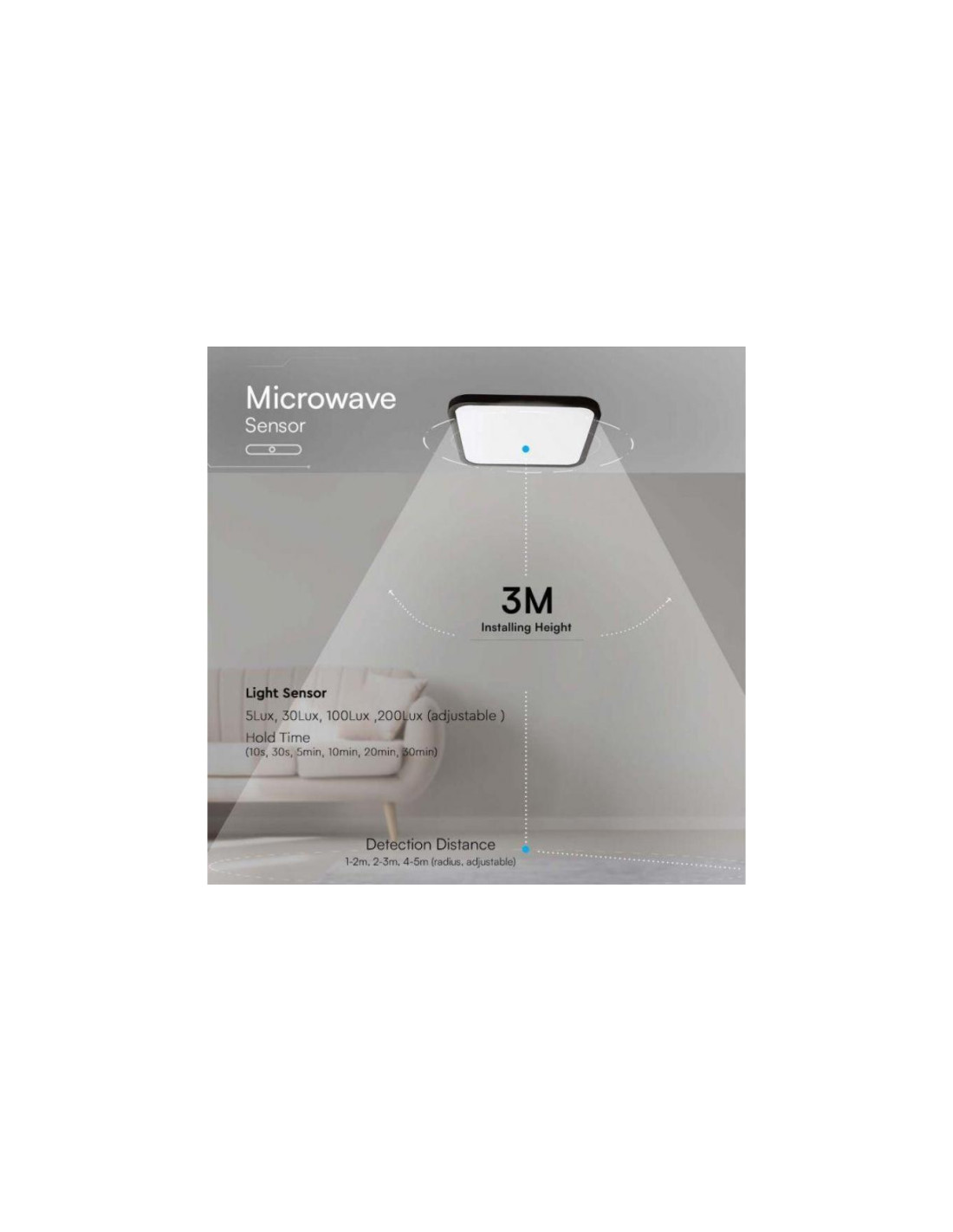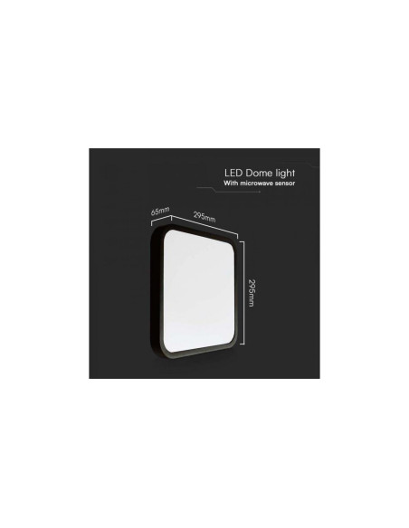Plafoniera LED 18W 1830lm 4000K IP44 Kwadrat fi295 Czarna Ramka z mikrofalowym czujnikiem ruchu (+ pilot do sterowania)