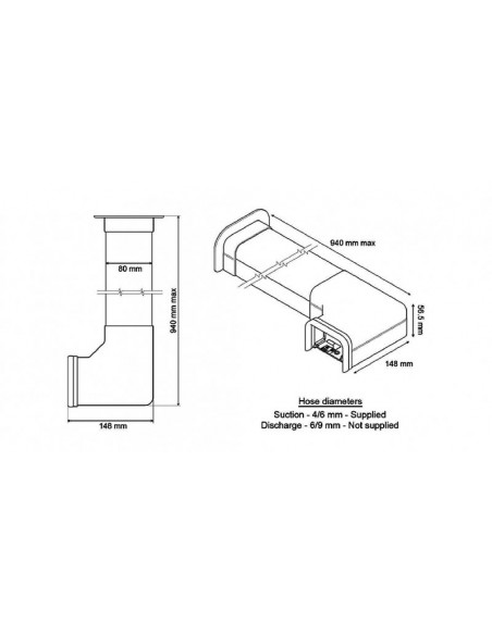 - Wymiary pompki: wys. 56,5 mm / szer. 148 mm / dł. 900 mm