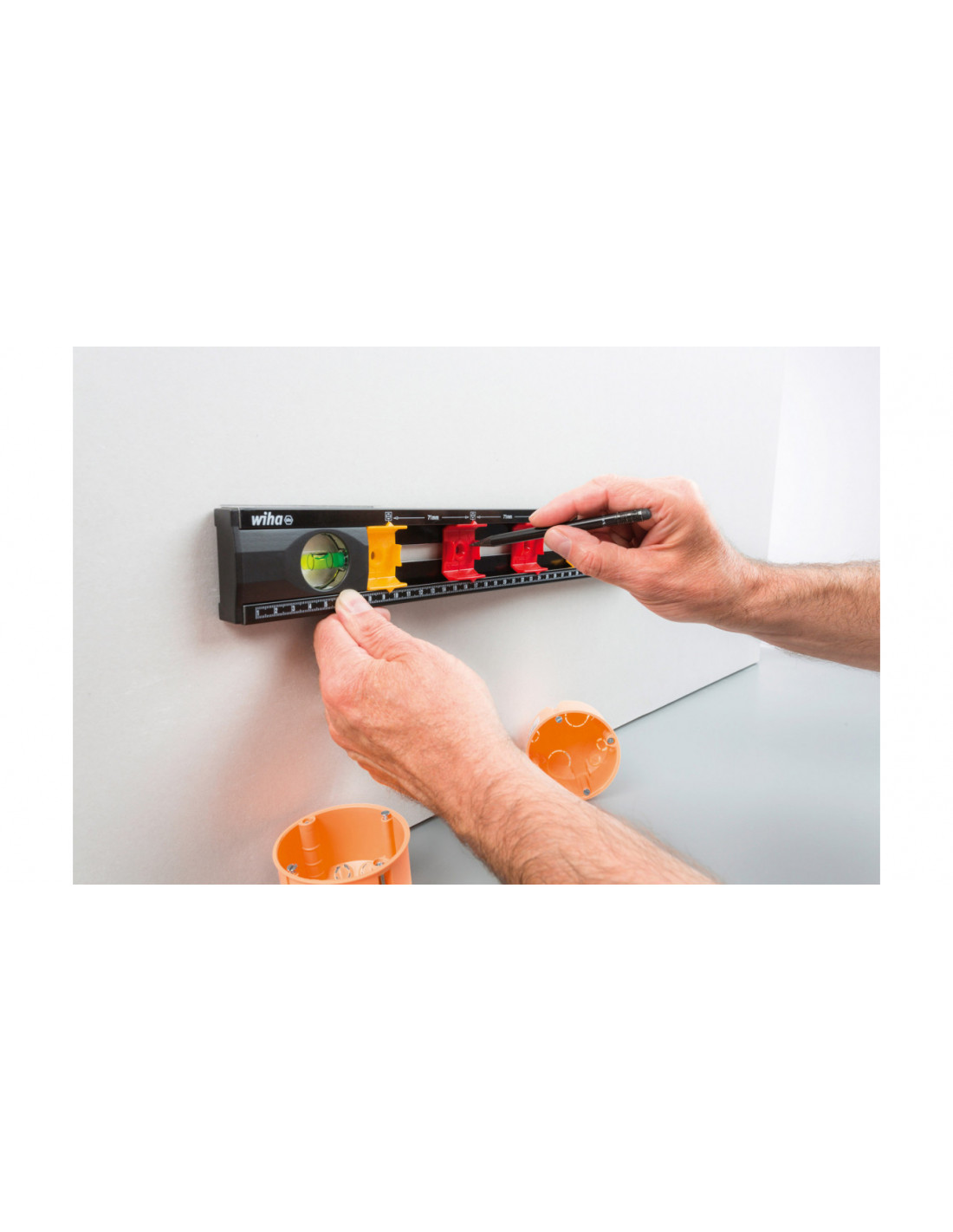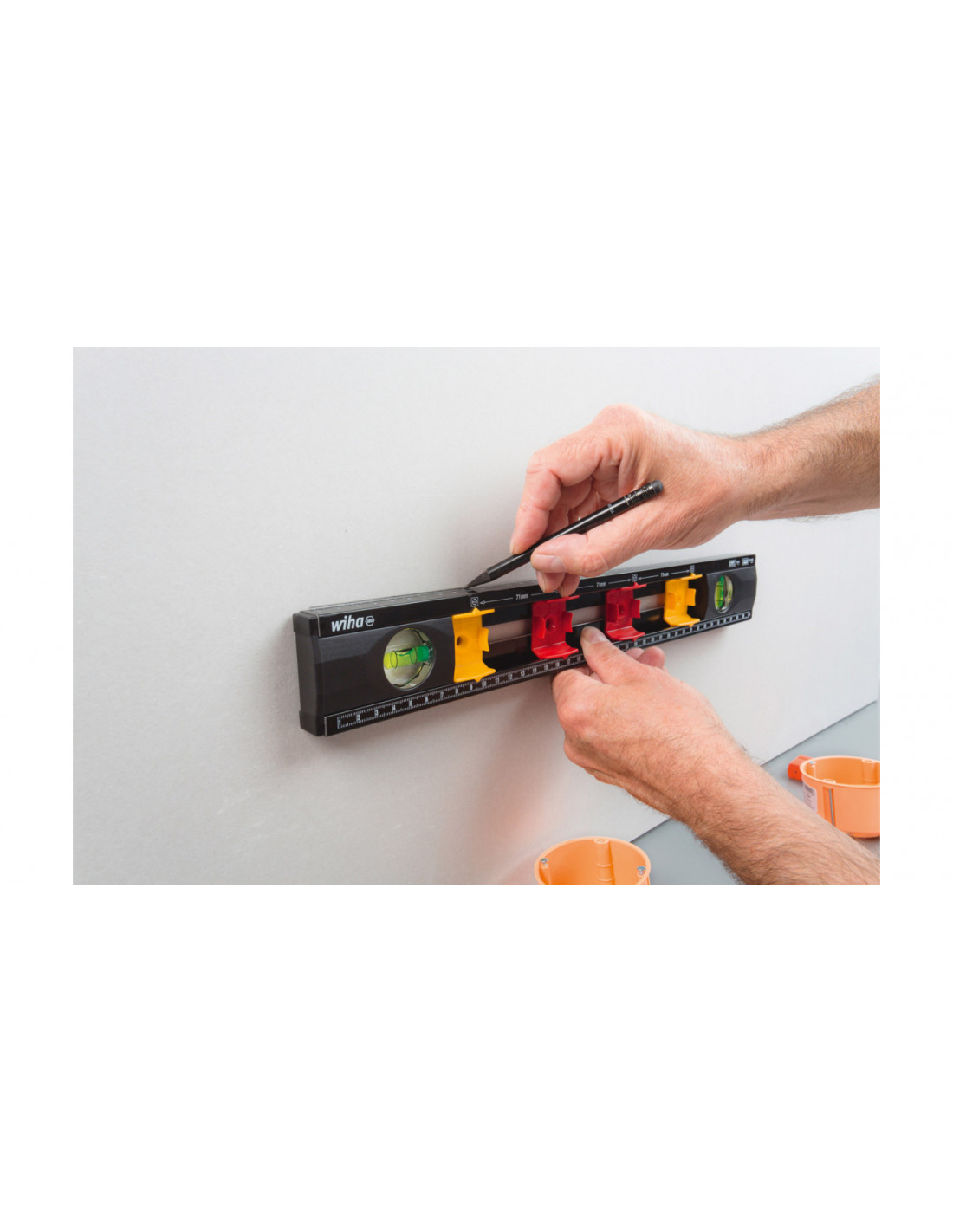 Poziomnica dla elektryków o długości 40cm z wbudowanymi znacznikami.