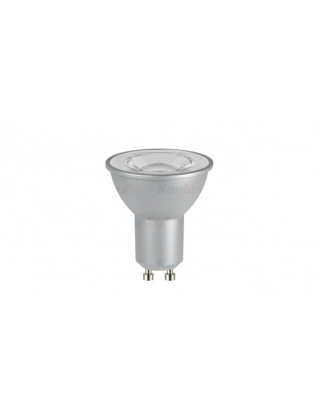 Lampa z diodami LED, zasilanie 220-240V~;50/60Hz, moc 6,5W, źródło światła LED SMD, trzonek GU10, Tc 6500K, strumień świetlny 580lm, kąt rozsyłu światłości 36°, trwałość 25000h, ilość cykli włącz/wyłącz >40000.