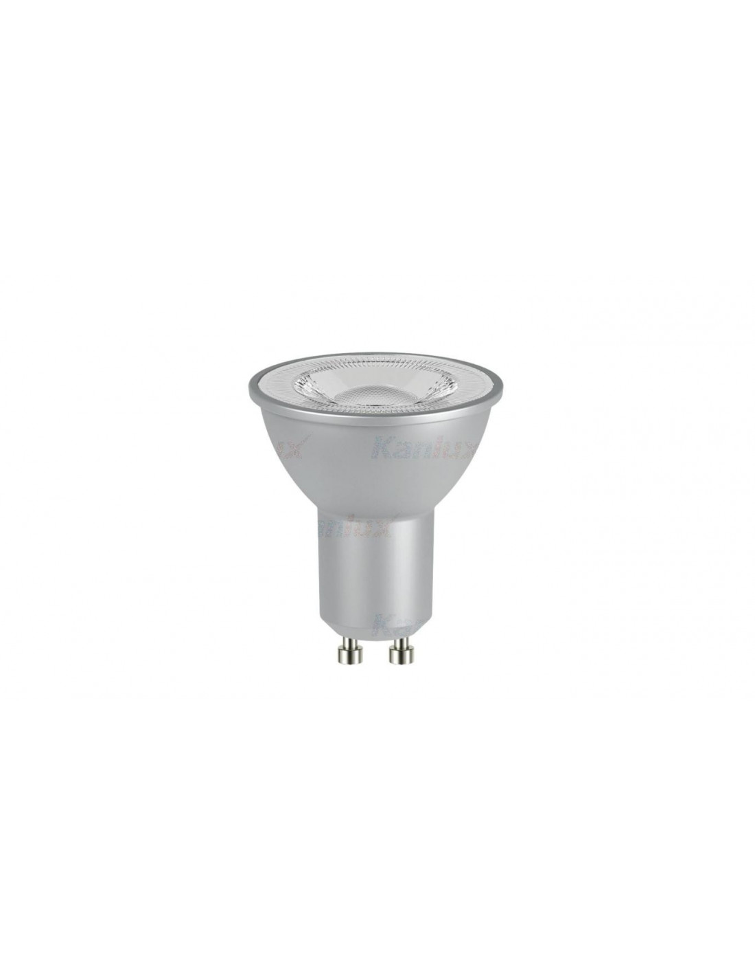 Lampa z diodami LED, zasilanie 220-240V~; 50Hz, moc 6,5W, źródło światła LED SMD, trzonek GU10, barwa światła zimna Tc 6500K, strumień świetlny 585lm, kąt rozsyłu światłości 110°, trwałość 25000h, ilość cykli włącz/wyłącz >40000.