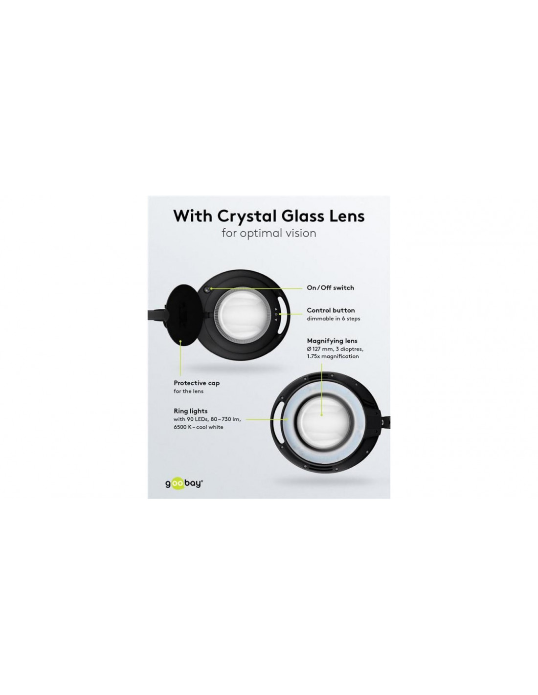 80-730 lm, możliwość ściemniania, soczewka ze szkła kryształowego 127 mm, powiększenie 1,75x, 3 dioptrie