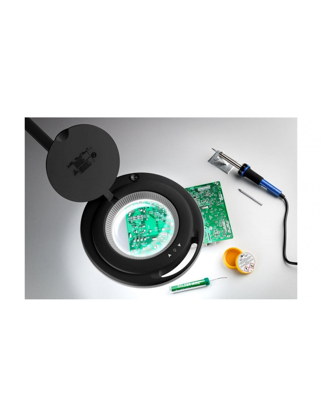 Lampa zaciskowa z lupą o średnicy 127 mm i harmonijnym, białym oświetleniem pierścieniowym LED w świetle dziennym
