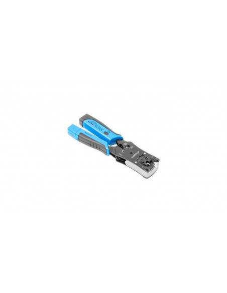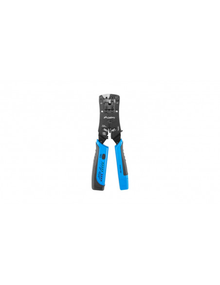 Zaciskarka i tester kabli - 2w1 Ten produkt Lanberg to profesjonalna zaciskarka dla wtyków RJ45 i RJ11; posiada wbudowany w rączki zaciskacza tester skrętki komputerowej możliwość odłączenia od zaciskarki jednej części testera; zasilany 4xLR44 - brak w zestawie; Dane techniczne: Umożliwia zaciskanie wtyków modularnych: RJ45 - 8p8c RJ11 - 6p2c RJ12 - 6p6c RJ14 - 6p4c noże do przycinania przewodów noże do zdejmowania izolacji zew.(przewody płaskie)