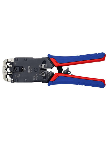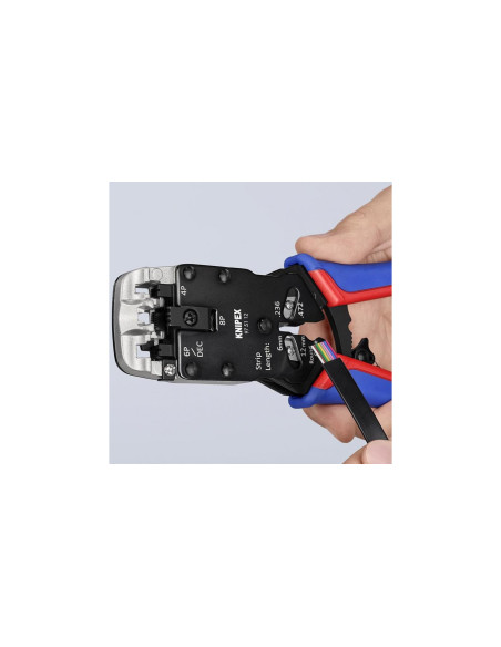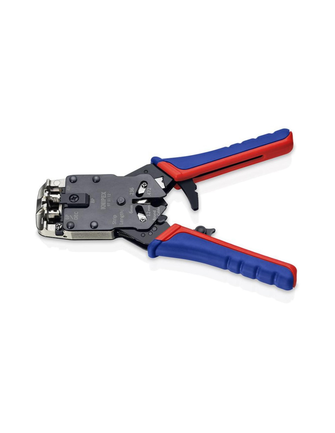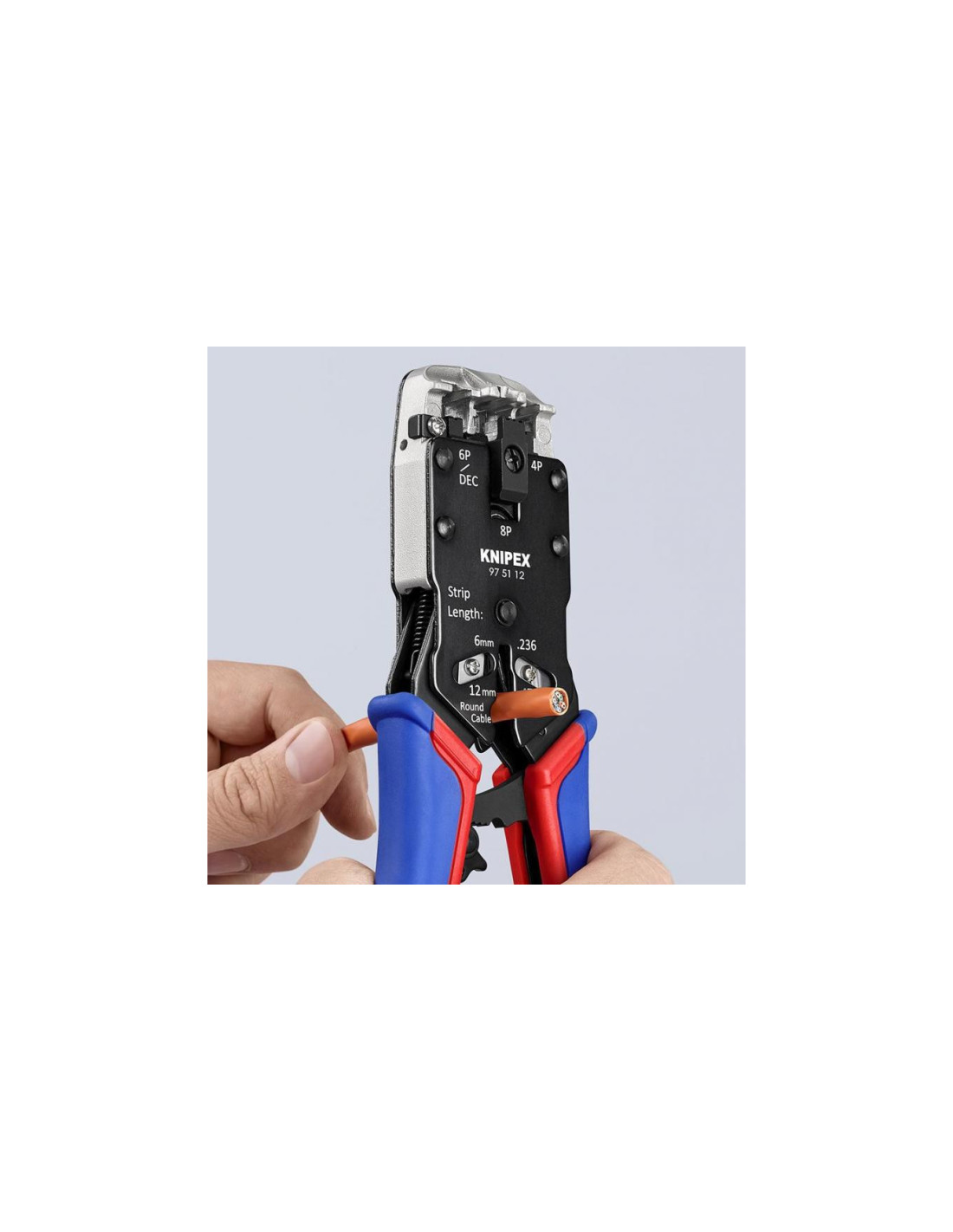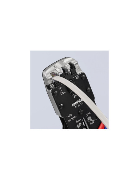Z obcinakiem i nożem do ściągania izolacji w przewodach płaskich na długości 6 i 12 mm