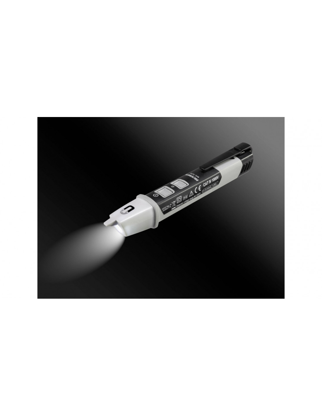 Bezpieczny pomiarTester jest zgodny z najwyższą klasą bezpieczeństwa CAT IV 1000 V. Tester działa bez kontaktu i dlatego nie jest wymagany bezpośredni kontakt z testowanym obiektem. W rezultacie obudowa zwykle nie musi być otwierana.