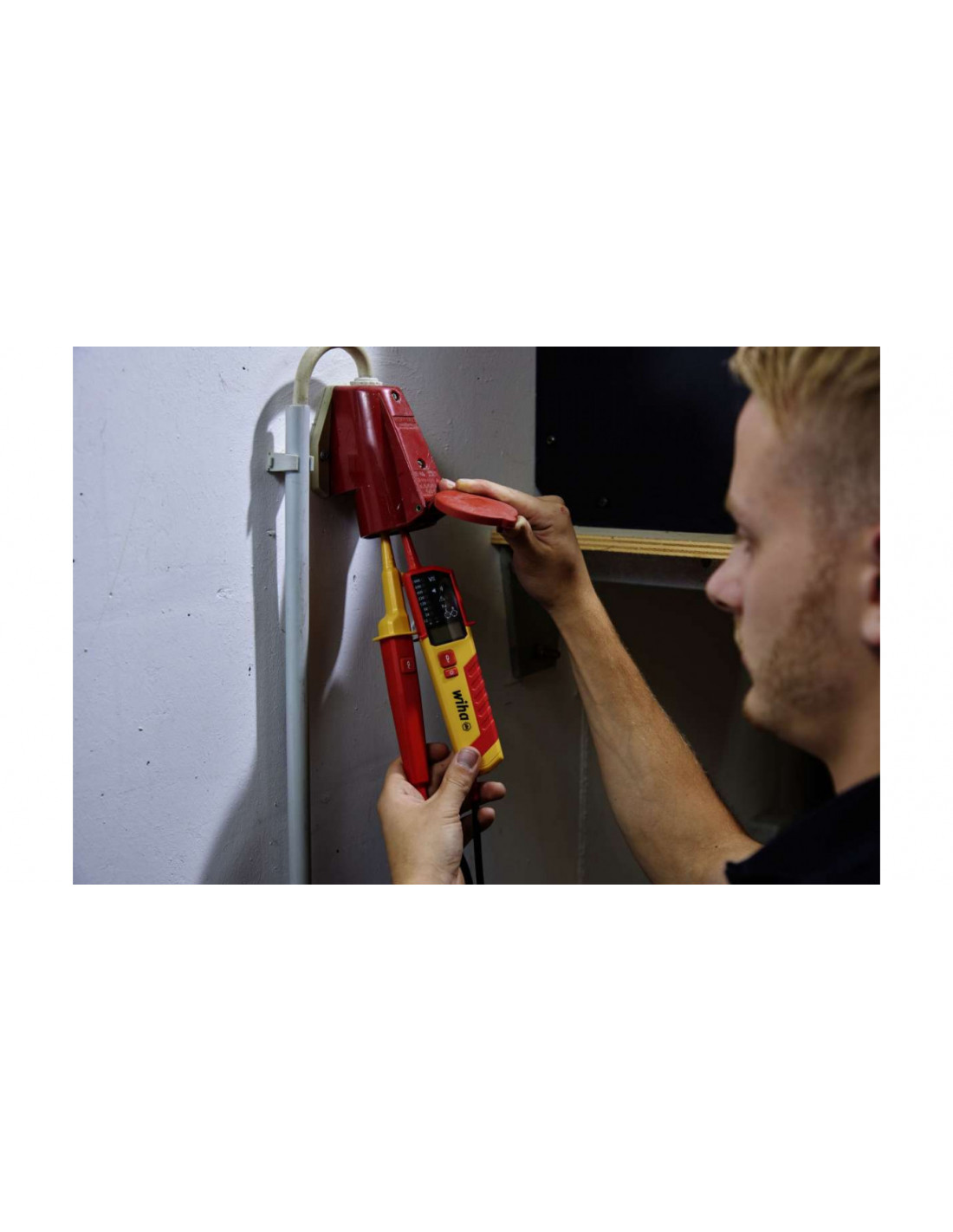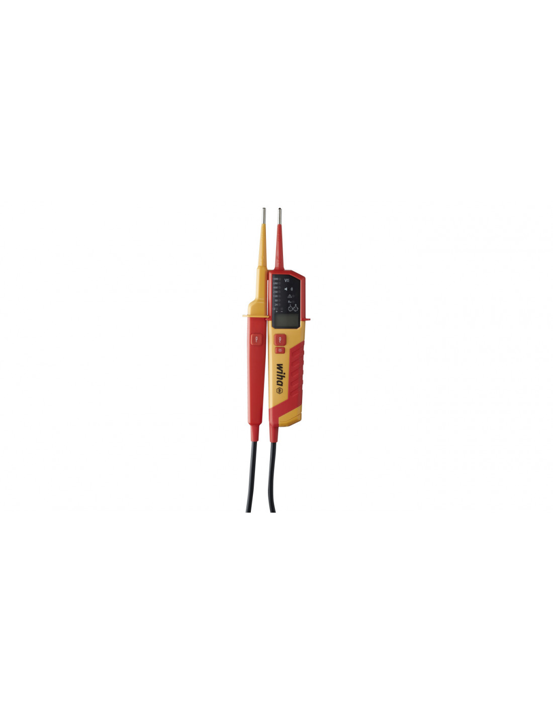 Dodatkowo podczas badania ciągłości obwodu sygnał dźwiękowy informuje o przepływie prądu. Ponadto możliwe jest wygodne przeprowadzanie kontroli gniazd elektrycznych jedną ręką dzięki zintegrowanemu elementowi dystansowemu. Tester napięcia Wiha dzięki zintegrowanej funkcji latarki zapewnia ponadto optymalną widoczność, nawet przy niedostatecznym oświetleniu miejsca pracy. Jednoczesne naciśnięcie przycisków na obu uchwytach końcówek pomiarowych pozwala na sprawdzenie wyłącznika ochronnego FI poprzez podłączenie obciążenia. Zgodnie z kategoriami pomiarowymi CAT III do 1000 V oraz CAT IV do 600 V tester napięcia i ciągłości obwodu Wiha zapewnia maksymalne bezpieczeństwo podczas prac w obrębie instalacji elektrycznej w obiektach budowlanych, jak również bezpośrednio przy źródłach energii dla instalacji niskonapięciowej.