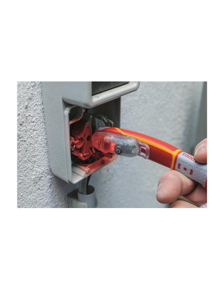 Użycie nie może być prostsze: należy zbliżyć urządzenie do kabla - jeżeli napięcie występuje zapali się czerwone, ostrzegawcze światełko.