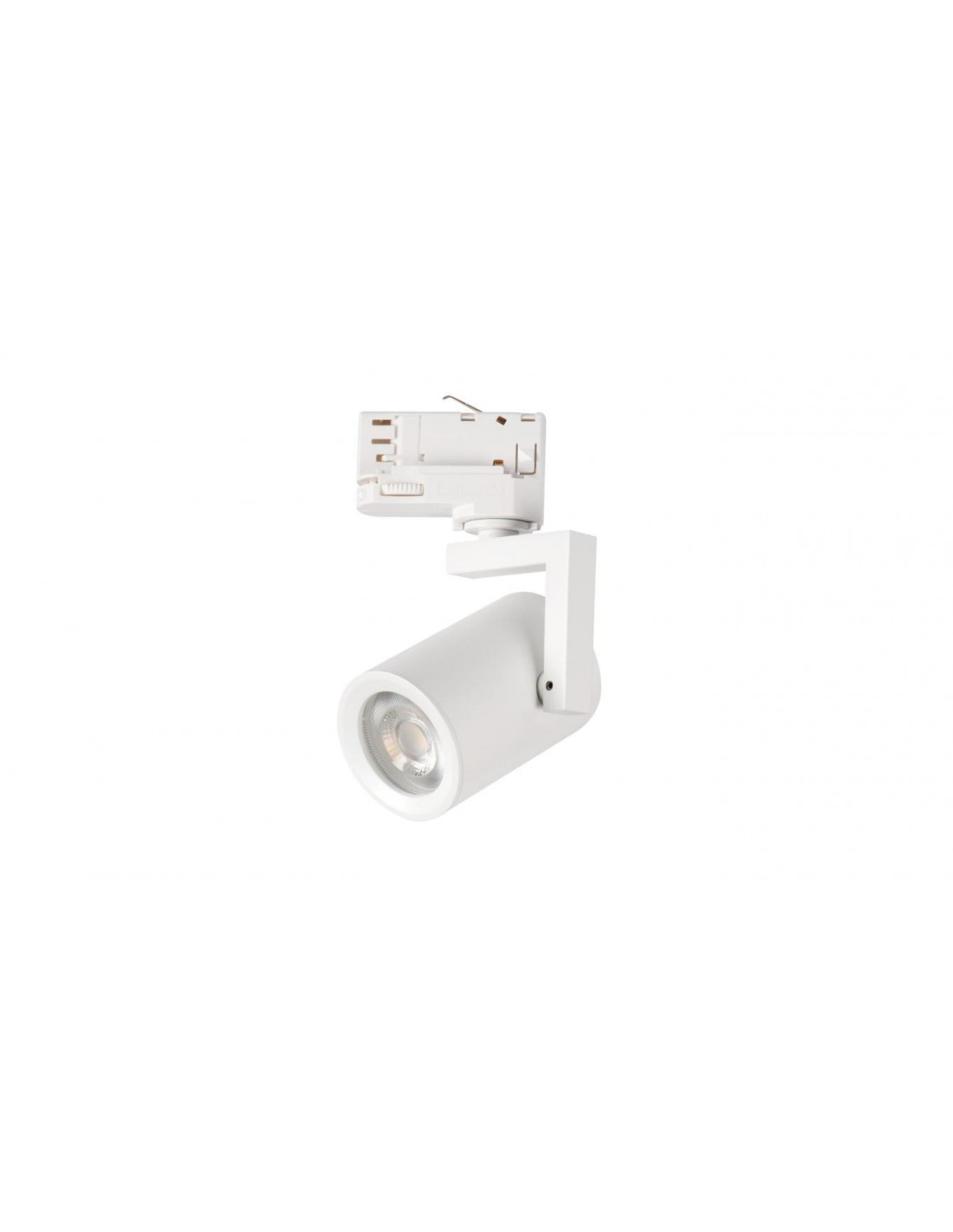 Projektor na szynoprzewód bez źródła światła w komplecie, Częstotliwość znamionowa [Hz]: 50, Klasa ochronności przed porażeniem elektrycznym: I, Kolor: biały, Materiał obudowy: stop aluminium, Miejsce montażu: na szynę TEAR, Miejsce zastosowania: wewnątrz, Minimalna odległość od oświetlanego obiektu: 0,5m, Moc maksymalna [W]: max 10, Napięcie znamionowe [V]: 220-240 AC, Oprawa ruchoma w zakresie horyzontalnym [°]: 330, Oprawa ruchoma w zakresie wertykalnym [°]: 90, Stopień IP: 20, Trzonek: GU10, Zakres temperatury otoczenia, na którą może być narażony wyrób [°C]: 5÷25, Źródło światła: PAR16.