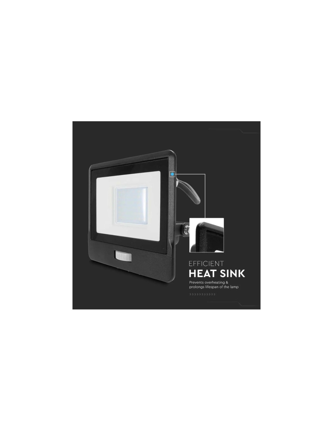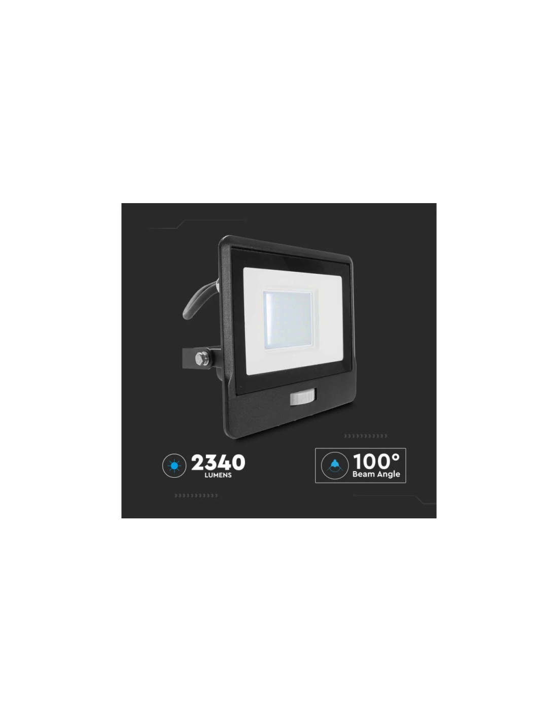Projektor LED z czujnikiem ruchu 30W 2340lm 6500K Dioda SAMSUNG IP65 Kabel 1m Czarny 5 Lat Gwarancji 20288