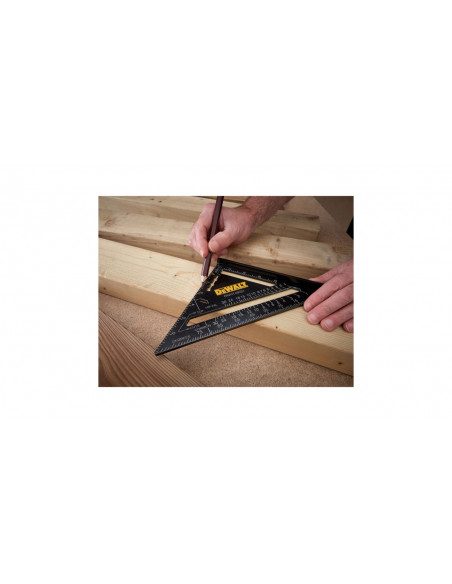 Przymiar dekarski jest tak skonstruowany, że można nim bardzo szybko mierzyć długość, głębokość, wyznaczać kąty w zakresie do 90°, rysować linie równoległe od krawędzi