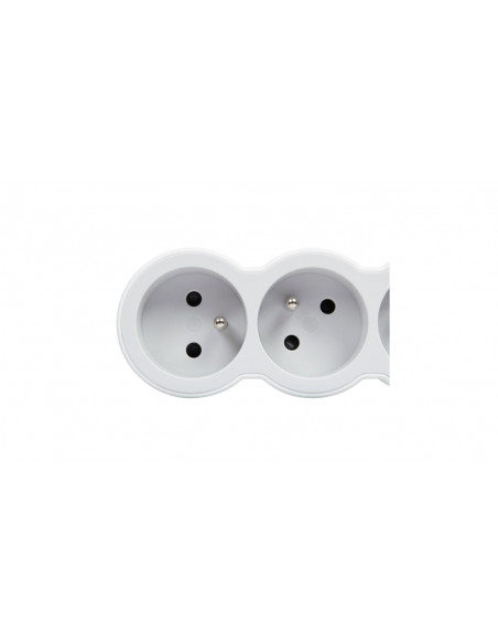 - 4 gniazda 2P+Z (3 ustawione pod kątem 45° i 1 odsunięte i ustawione pod kątem 90° do podłączenia np. zasilacza bez blokowania sąsiedniego gniazda)