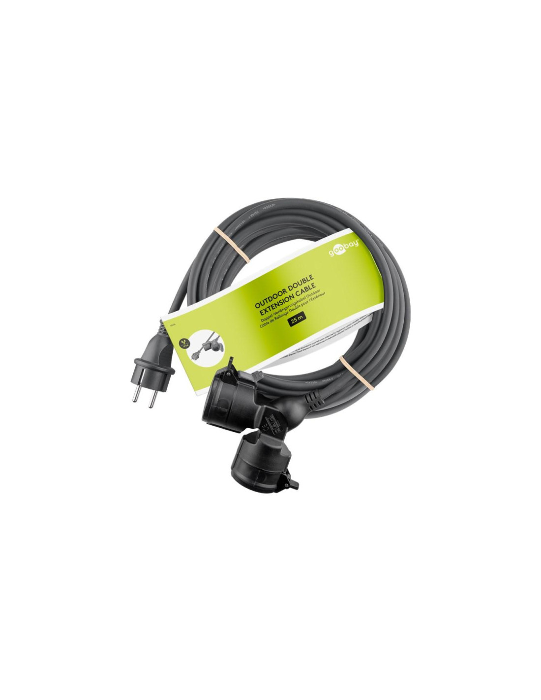 Podwójny przedłużacz zewnętrzny, 25 m, czarny