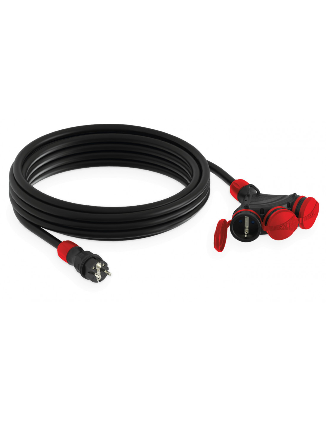 Przedłużacz budowlany 3-gniazda z/u 10m /H05RR-F 3x2,5/ IP54 czarny/czerwony W-01174
