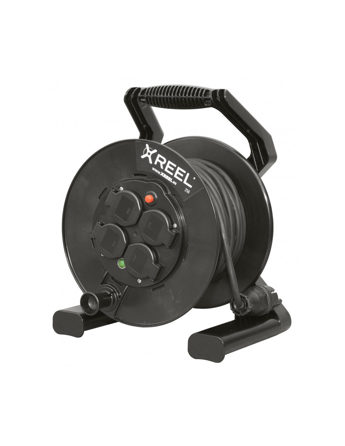 PCE jest polskim producentem, który od wielu lat zajmuje się wytwarzaniem najwyższej klasy urządzeń elektrotechnicznych, przeznaczonych do użytku domowego, jak i profesjonalnego. Jednym z cieszących się największym powodzeniem urządzeń tej marki jest przedłużacz. Powyższy jego model wykonano z trwałego tworzywa sztucznego, które zapewnia aparaturze odporność na działanie wody i zanieczyszczeń. Stopień ochrony IP44 świadczy o tym, że urządzenie może pracować zarówno wewnątrz budynku, jak i poza nim. Dodatkową ochroną jest osłonka termiczna, którą posiada produkt tego typu. Sprzęt został jednocześnie wyposażony w ramę montażową, która ułatwia instalację produktu w dowolnym miejscu. Przedłużacz nie posiada funkcji automatycznego zwijania kabla, który oznaczono tu symbolem H05RR-F. Przewód przedłużacza ma długość sięgającą 50 m. Posiada trzy żyły. Każda z nich charakteryzuje się przekrojem o powierzchni równej 1,5 mm2. Dzięki wyposażeniu aparatury w cztery gniazda typu CEE, z przedłużaczem mogą pracować jednocześnie cztery urządzenia zewnętrzne.