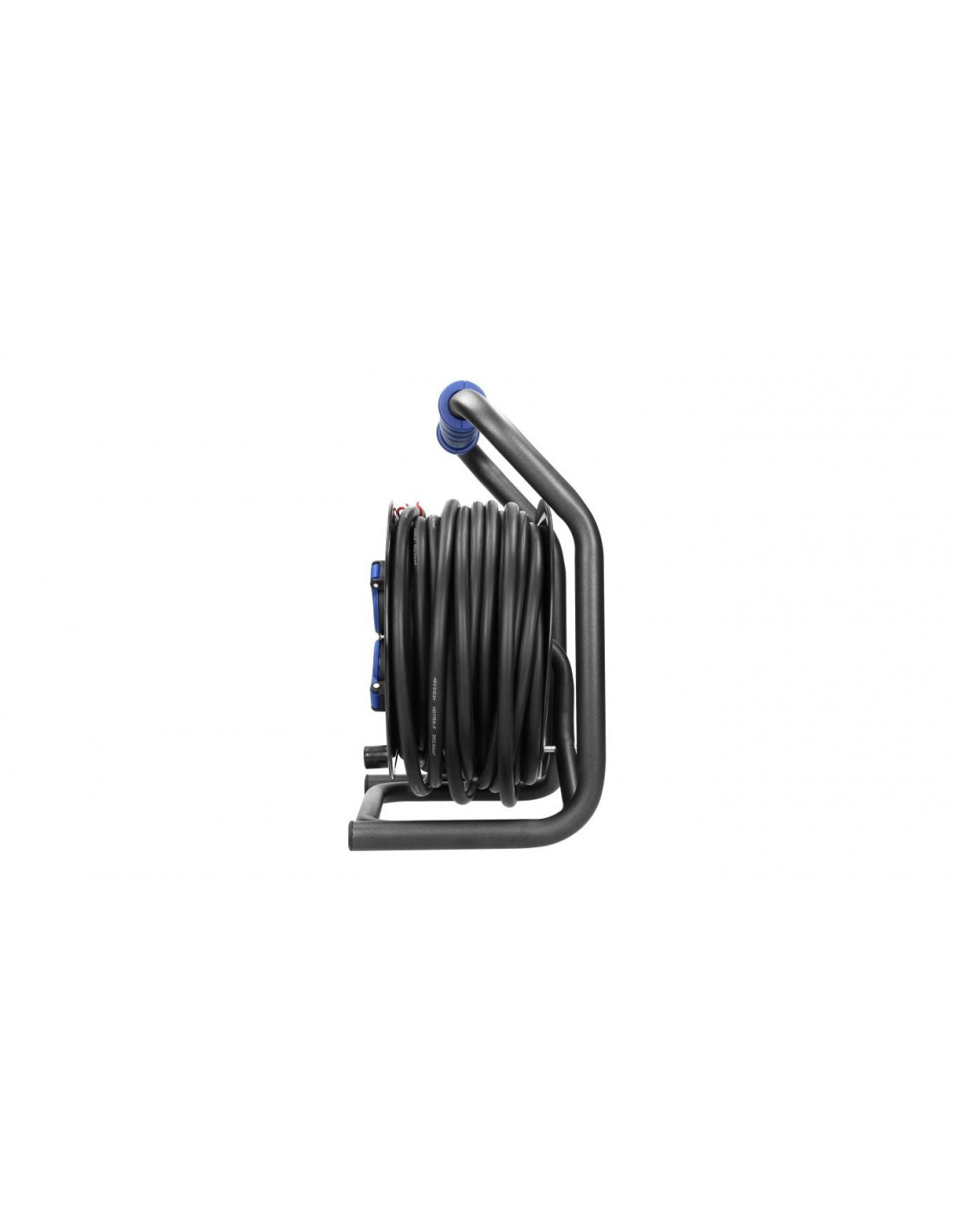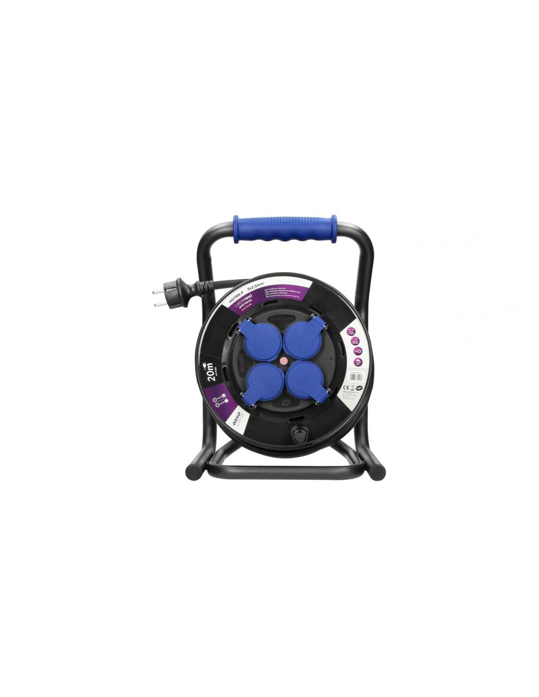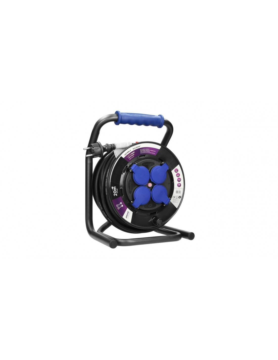 Przedłużacz na zwijanym bębnie z innowacyjnym systemem anti-twist (stałe gniazda), unikatowym, metalowym stojakiem CUBE oraz zabezpieczeniem przeciążeniowym w postaci wyłącznika termicznego. Kabel gumowy, olejoodporny H07RN-F o długości 20m. Posiada 4 gniazda sieciowe z uziemieniem, przesłonami torów prądowych oraz pokrywami uszczelniającymi, które chronią przed zabrudzeniami i wilgocią, wygodny, gumowy uchwyt do przenoszenia, obracający się uchwyt do zwijania kabla, blokadę obrotu bębna oraz wtyczkę zalewaną IP44. Przystosowany do ciężkich warunków użytkowania również na zewnątrz.