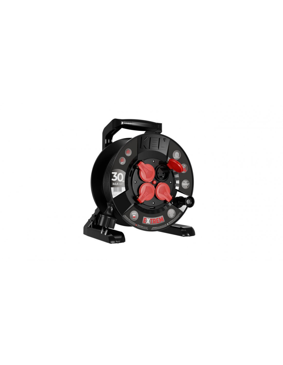 Przedłużacz bębnowy EXTREME LINE 4 gniazda z/u IP44 16A H05RR-F 3x2,5 30m czarny W-100029