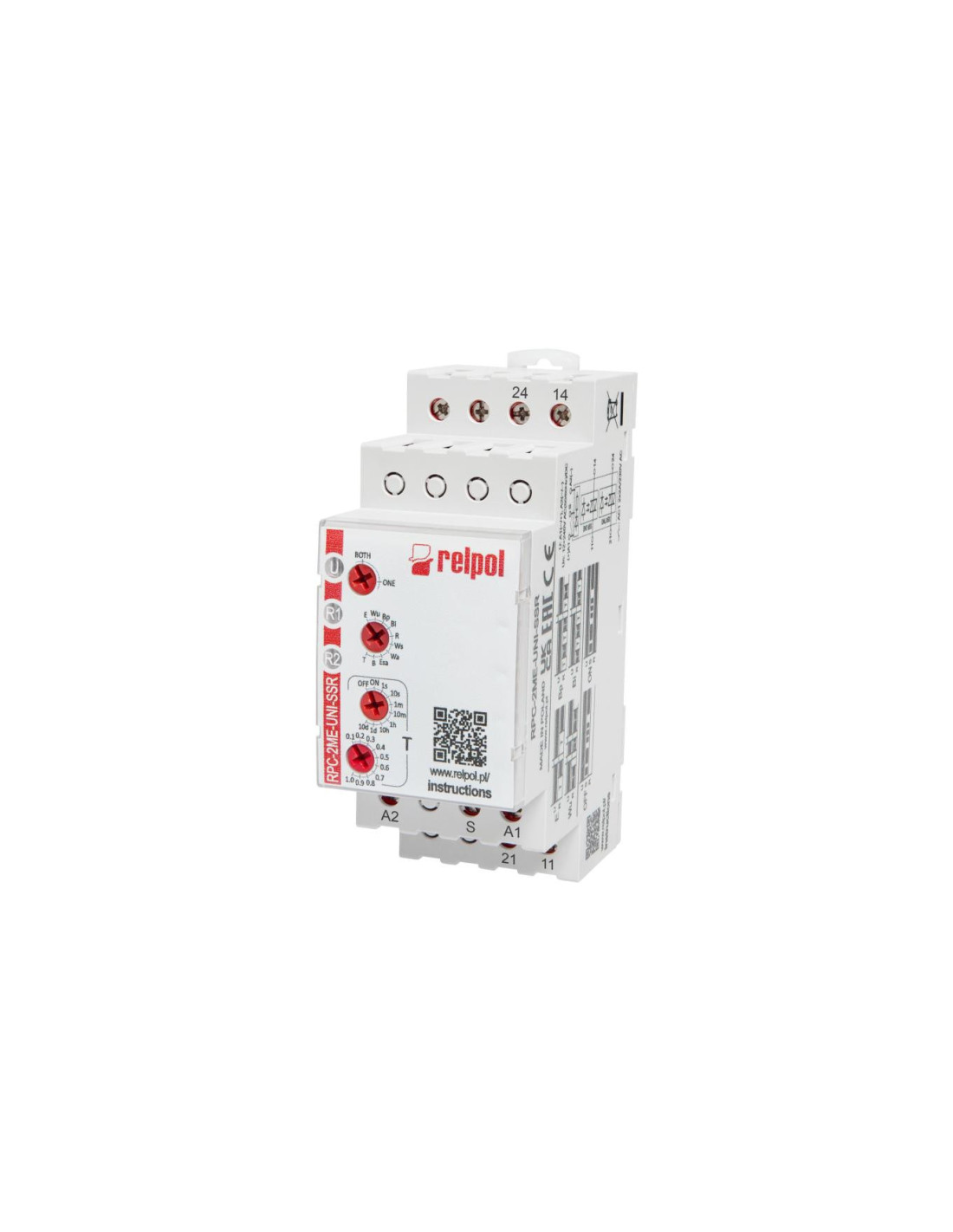 Przekaźnik czasowy - 2 wyjścia półprzewodnikowe 2 x 1Z (triak). Napięcie zasilania - uniwersalne: 12...240VAC/DC 50/60 Hz . Wielofunkcyjne 10 funkcji czasowych; 8 zakresów czasowych. Tryb pracy ONE i BOTH. Szerokość 35 mm.