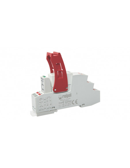 Przekaźnik interfejsowy PUSH-IN: 2P - dwa zestyki przełączne, napięcie zasilania Un - 24 V AC, materiał stykowy AgNi. AC1 - 8 A / 250 V AC; DC1 - 8 A / 24 V DC. Wymiary: 97 x 15,9 x 75,8 mm. Montaż na szynie 35 mm lub na płycie montażowej jednym wkrętem M3. Przystosowane do współpracy ze złączami grzebieniowymi typu ZGZP. Zestaw zawiera: gniazdo push-in GZP80, przekaźnik RM84 w standardowej białej obudowie, obejmę wyrzutnikową GZP80-0400 oraz moduł przeciwprzepięciowy M91G (LED zielona + warystor)