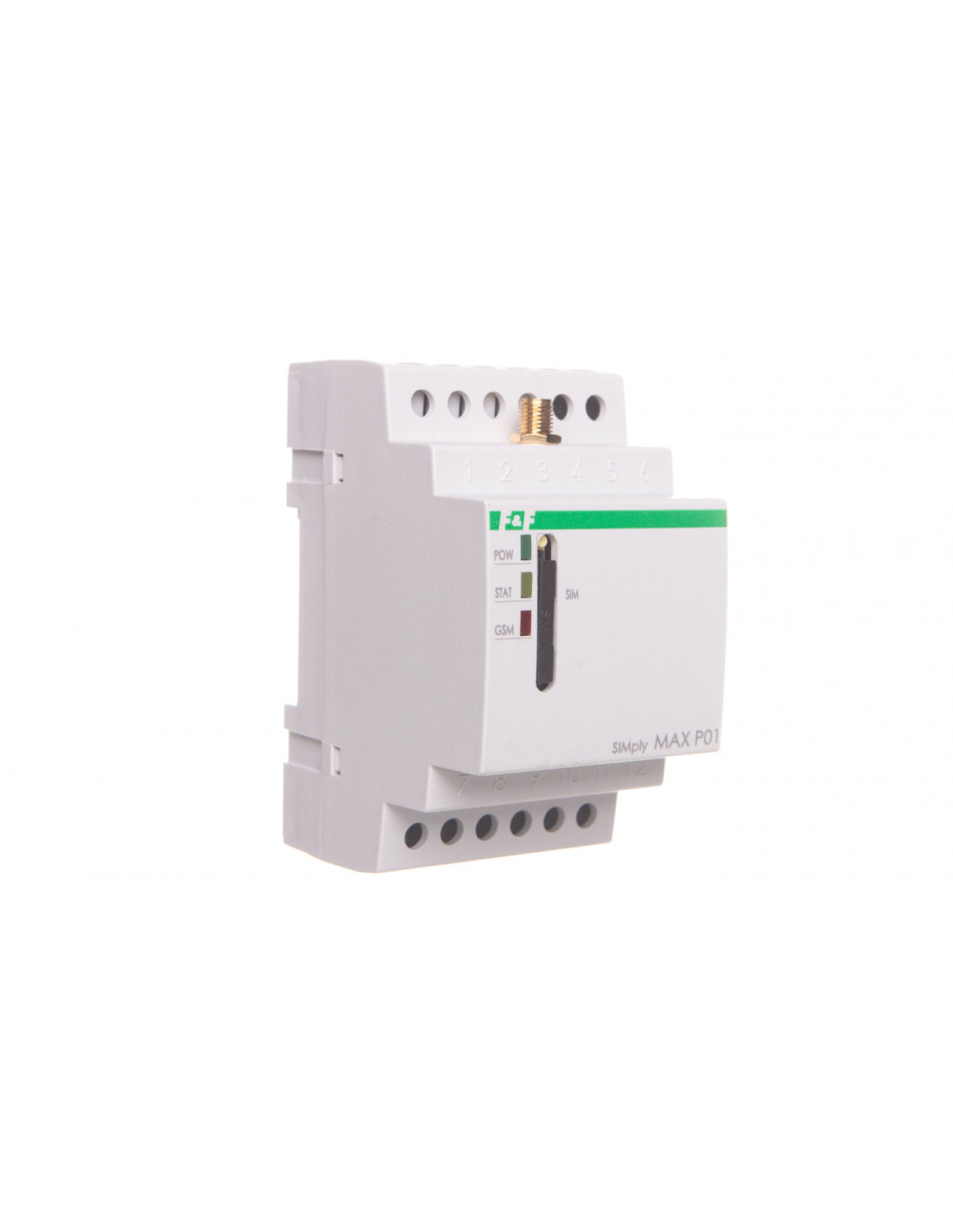 Przekaźnik SIMply MAX P01 z wbudowanym komunikatorem GSM służy do zdalnego sterowania za pomocą telefonu komórkowego. Pozwala w prosty sposób zarządzać wyjściami i kontrolować stan pracy urządzeń podłączonych do wejść sterownika.