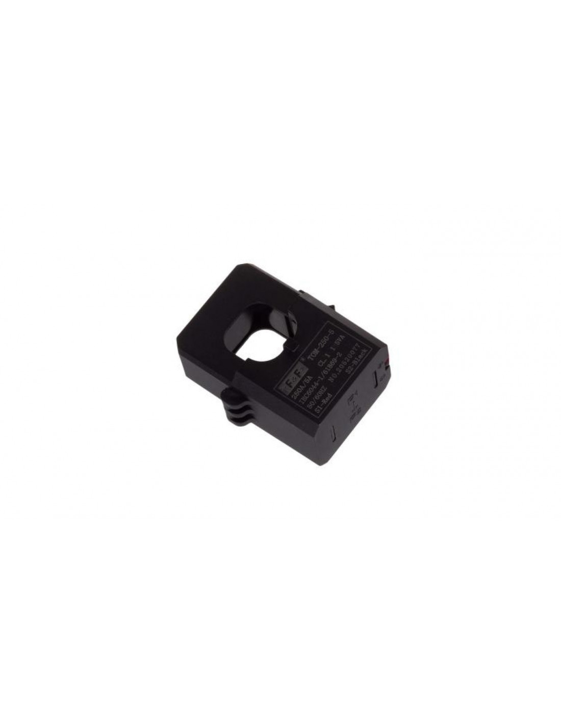 Przewód z mierzonym prądem przechodzi przez główny otwór przekładnika (P1/P2), co jest równoważne z jednym zwojem uzwojenia pierwotnego. Zaciski uzwojenia wtórnego S1 i S2 podłączone są do zacisków obwodu pomiarowego urządzenia kontrolnego lub pomiarowego.