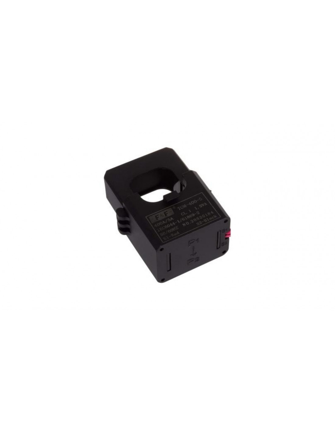 Przewód z mierzonym prądem przechodzi przez główny otwór przekładnika (P1/P2), co jest równoważne z jednym zwojem uzwojenia pierwotnego. Zaciski uzwojenia wtórnego S1 i S2 podłączone są do zacisków obwodu pomiarowego urządzenia kontrolnego lub pomiarowego.