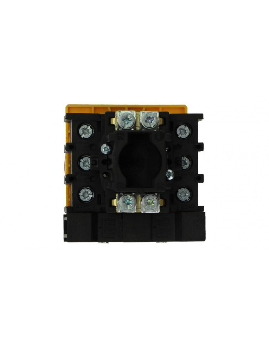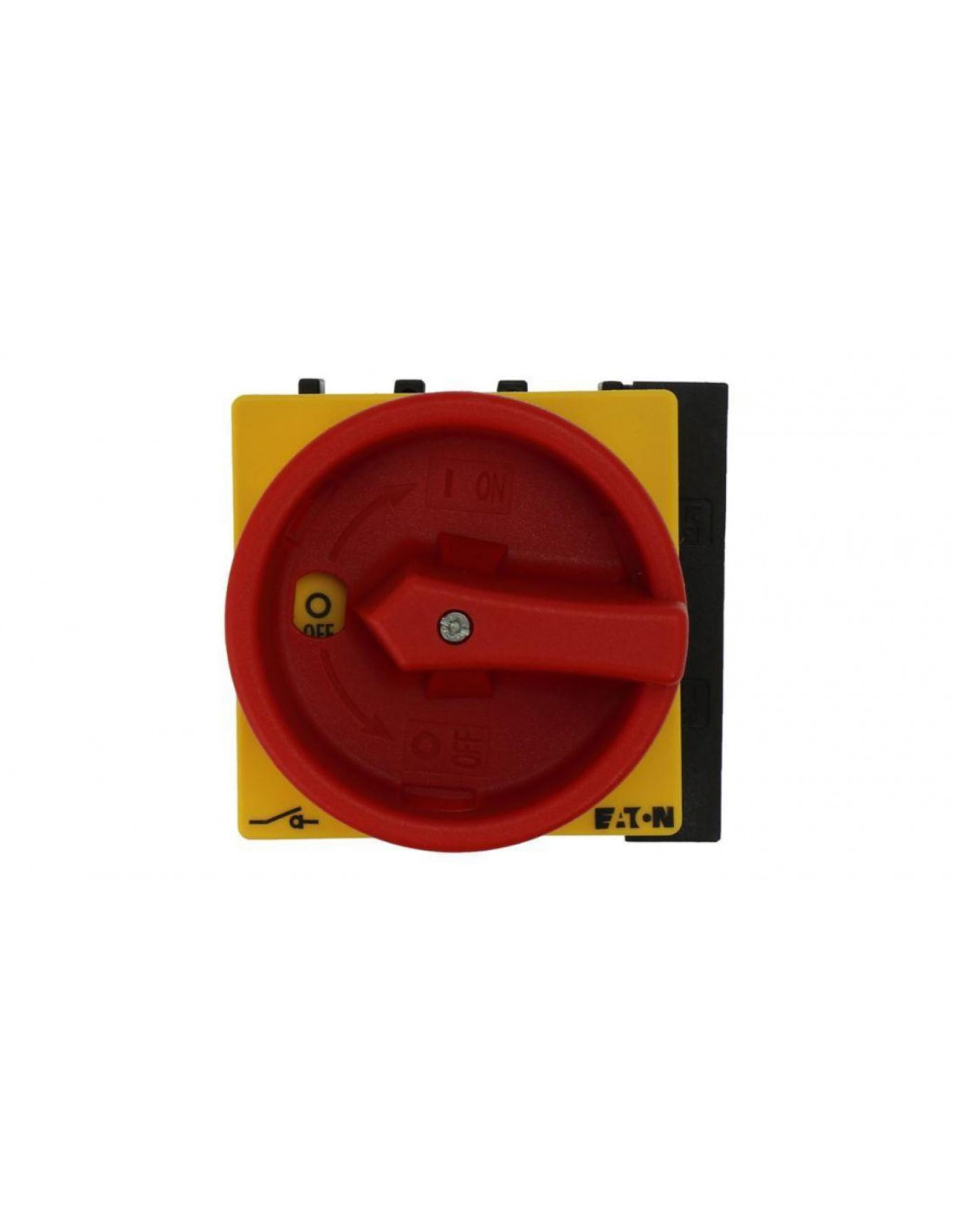 Rozłącznik 40A, 3-bieg.+NO+NC natablicowy, czerw-żółta rączka z blok.