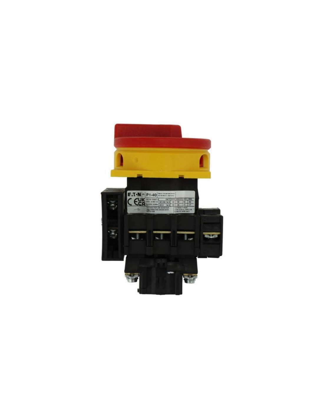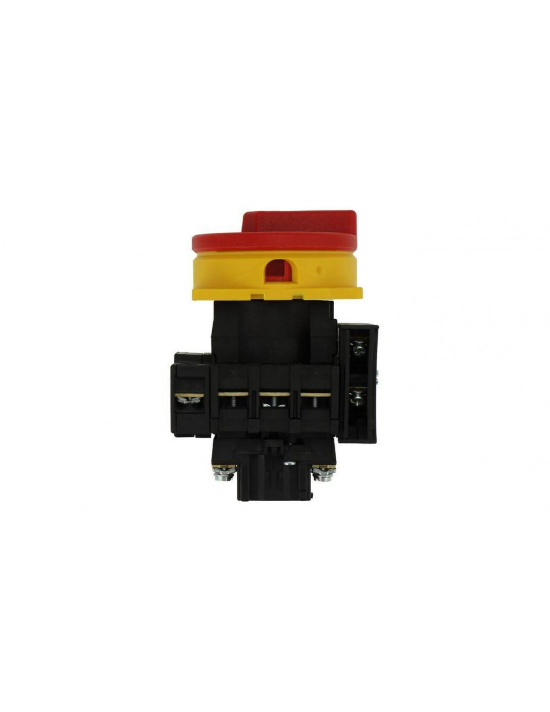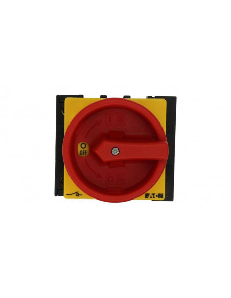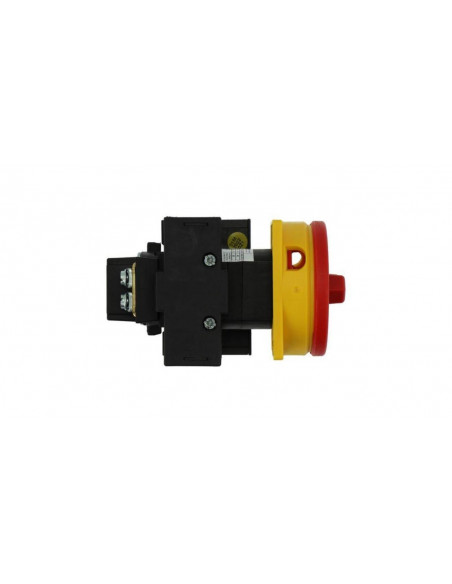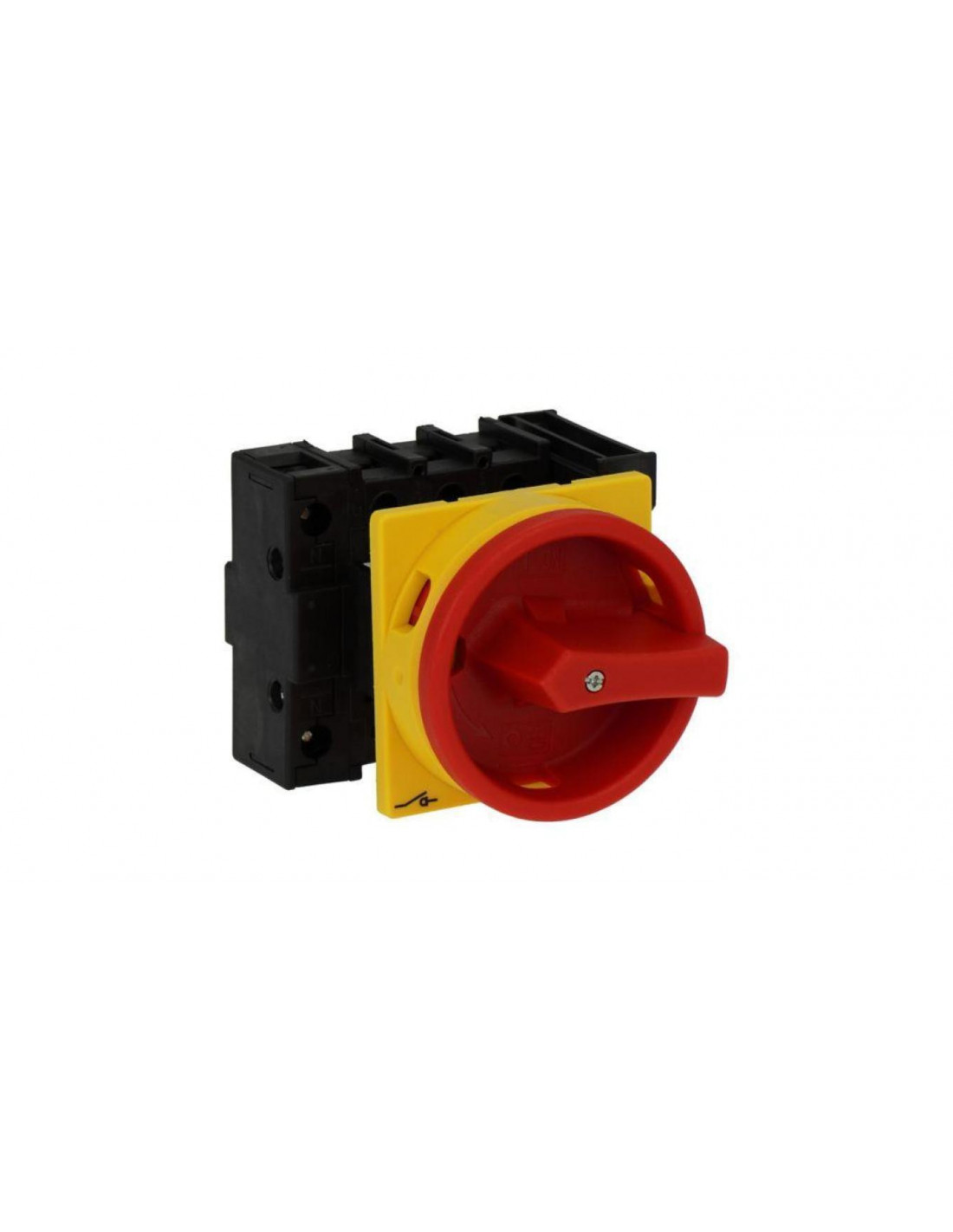 Rozłącznik 40A, 3-bieg.+N+NO+NC natablicowy, czerw-żółta rączka z blok.