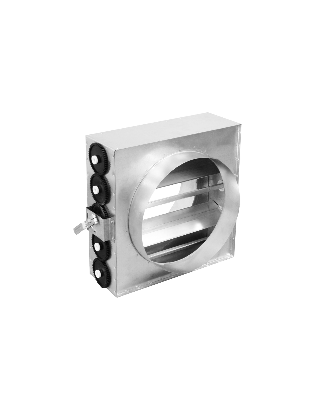 Przepustnica wielopłaszczyznowa kołowa jest stosowana do regulacji lub zamknięcia przepływu powietrza w przewodach wentylacyjnych o przekroju kołowym. Przepustnice wielopłaszczyznowe kołowe wykonane są na bazie przepustnic DSQW. Dodatkowo przepustnica składa się z obudowy z dwóch stron posiadającej odejścia okrągłe pasujące do kanałów SPR. Zakres temperatur pracy: –20˚ do +80˚ C. Przepustnice DASQ, DASQL są sterowane za pomocą mechanizmu ręcznego. Natomiast przepustnice DASQM, DASQML są przystosowane do montażu siłownika. Regulacja przepustnicy odbywa się za pomocą kół zębatych, napędzanych ręcznie lub poprzez siłownik. Mechanizm napędowy znajduje się na zewnątrz przepustnicy. Przepustnica spełnia klasę szczelności B.