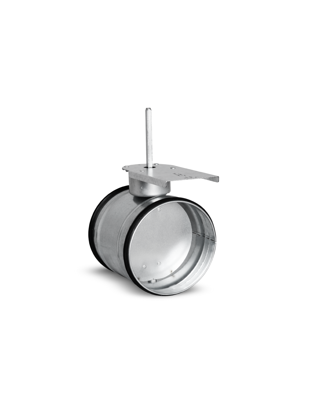Przepustnice wykonane z mocowaniem pod siłownik dostępne w wymiarach od Ø80 do Ø630 mm, włącznie z wymiarami pośrednimi. Podstawka pod siłownik jest montowana tak aby możliwe było zastosowanie do 50 mm izolacji. Standardowo siłownik mocowany jest wzdłużnie.