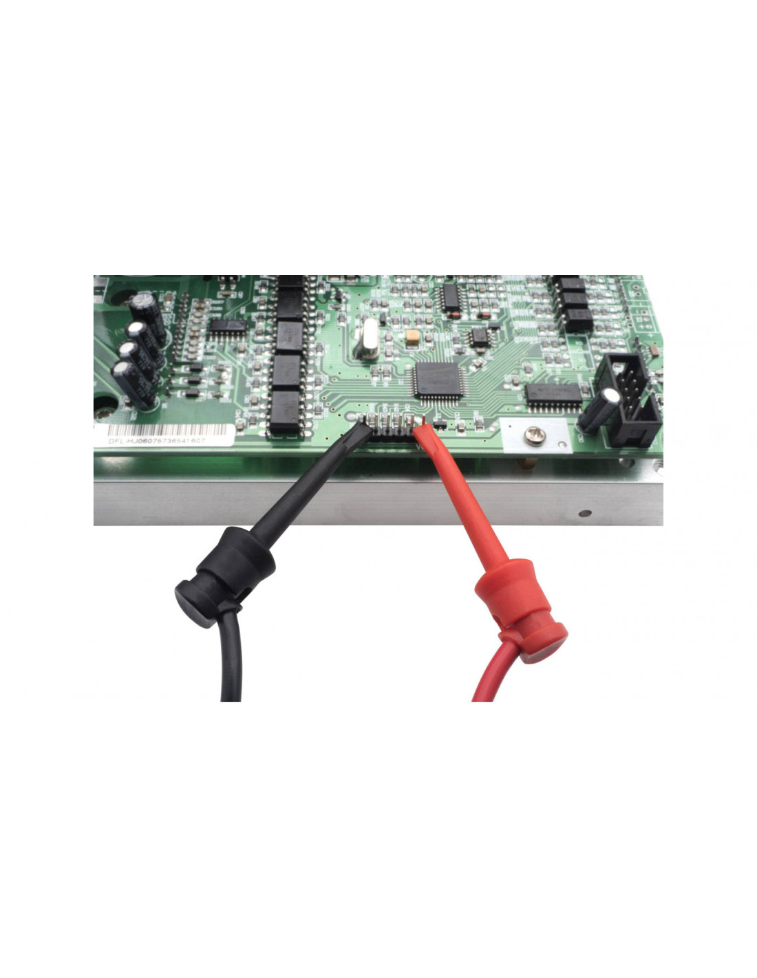 Do podłączenia do przyrządów pomiarowych lub do zasilania. Haki są szczególnie odpowiednie do kontaktu z układami scalonymi lub komponentami z nóżkami.