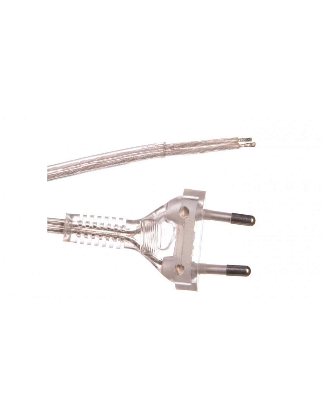 Przewód H03VVH2-F 2 x 0,75 mm2, o długości 250 cm z płaską wtyczką.Kolor bezbarwny.