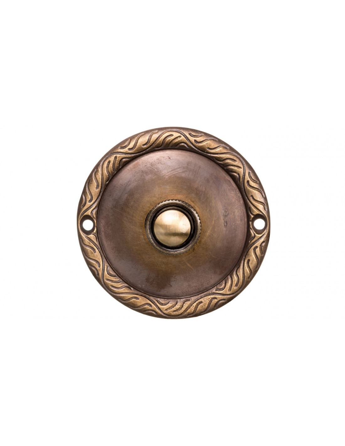 Przycisk dzwonkowy podtynkowy,przycisk przystosowany do montażu w puszce instalacyjnej O 60mm (z otworami do przykręcania osprzętu),ozdobny okrągły szyld,odlew mosiężny o powierzchni patynowanej,wandaloodporny,przeznaczony do instalacji dzwonkowej i domofonowe,możliwość sterowania zamka elektro-magnetycznego lub innych urządzeń niskiego napięcia (50 V AC),wkręty mocujące dołączone do wyrobu (2szt.)