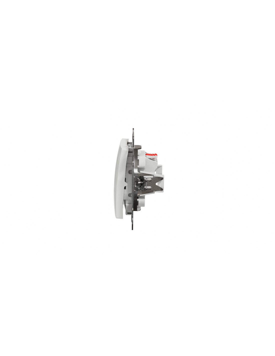 Układ zacisków gniazda w jednej linii ułatwia ułożenie przewodów w puszce (zmniejszenie efektu prężenia przewodów).