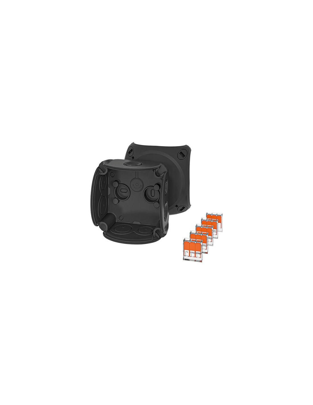 Puszka odgałęźna do instalacji osłoniętych 84x84x55 z dławnicami membranowymi z 5 zaciskami COMPACT wago, czarna IP 66