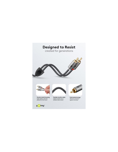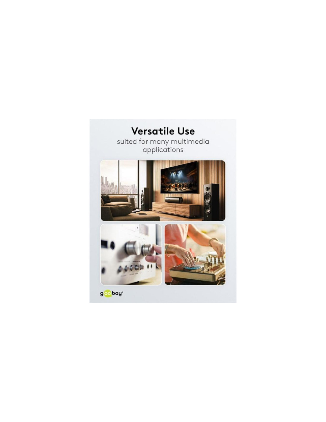 Seria Goobay Plus z wtyczkami w smukłej, eleganckiej metalowej obudowie w kolorze Sharkskin Grey. Stereofoniczny kabel RCA jest wszechstronny - zarówno w subwooferze, odtwarzaczu Blu-ray, konsoli mikserskiej, jak i systemach hi-fi. Wysokiej jakości, solidne wtyczki wytrzymują częste ponowne podłączanie bez uszkodzeń.
