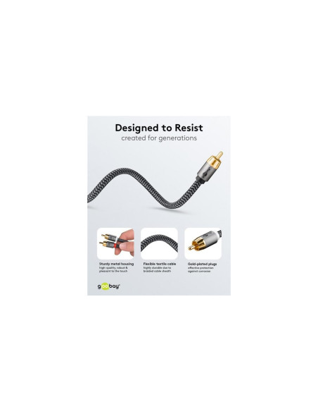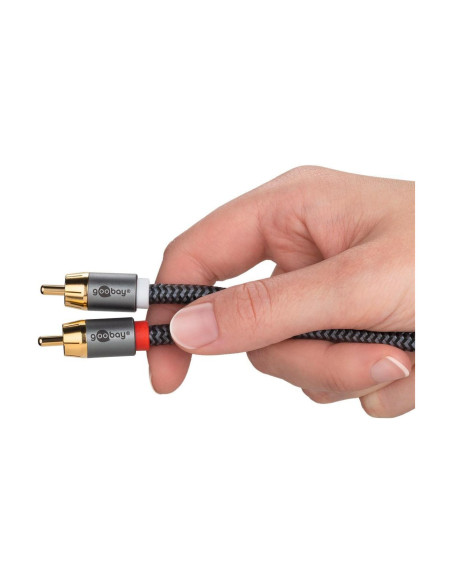 Seria Goobay Plus z wtyczkami w smukłej, eleganckiej metalowej obudowie w kolorze Sharkskin Grey. Kabel jest specjalnie dostosowany do analogowych sygnałów o niskiej częstotliwości subwooferów - zapewnia bogatą, mocną reprodukcję basów, zapewniając imponujące wrażenia muzyczne i filmowe.