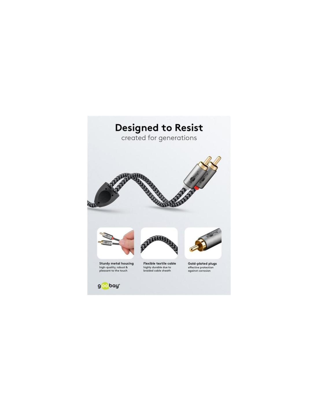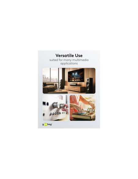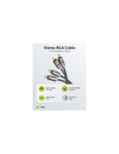 Seria Goobay Plus z wtyczkami w smukłej, eleganckiej metalowej obudowie w kolorze Sharkskin Grey. Stereofoniczny kabel RCA jest wszechstronny - zarówno w subwooferze, odtwarzaczu Blu-ray, konsoli mikserskiej, jak i systemach hi-fi. Wysokiej jakości, solidne wtyczki wytrzymują częste ponowne podłączanie bez uszkodzeń.